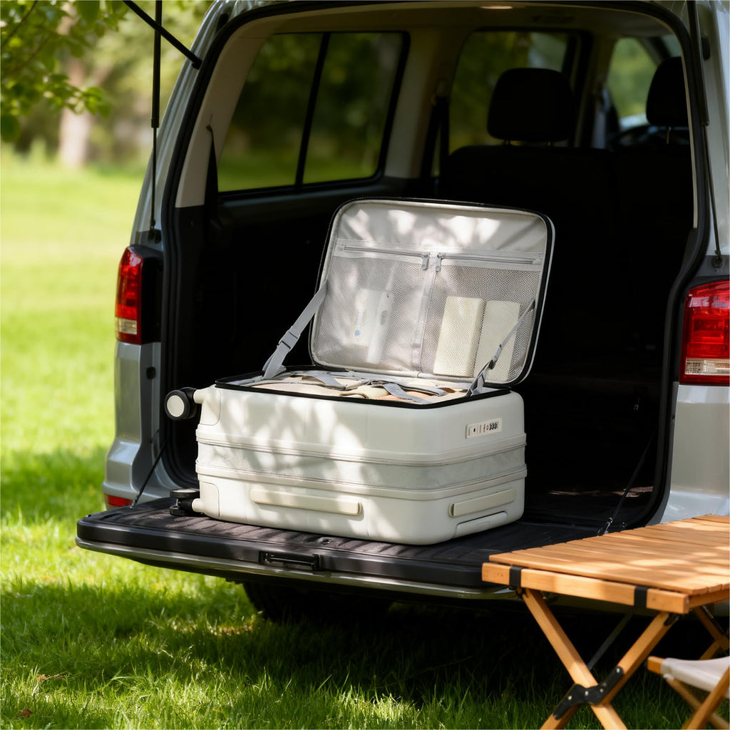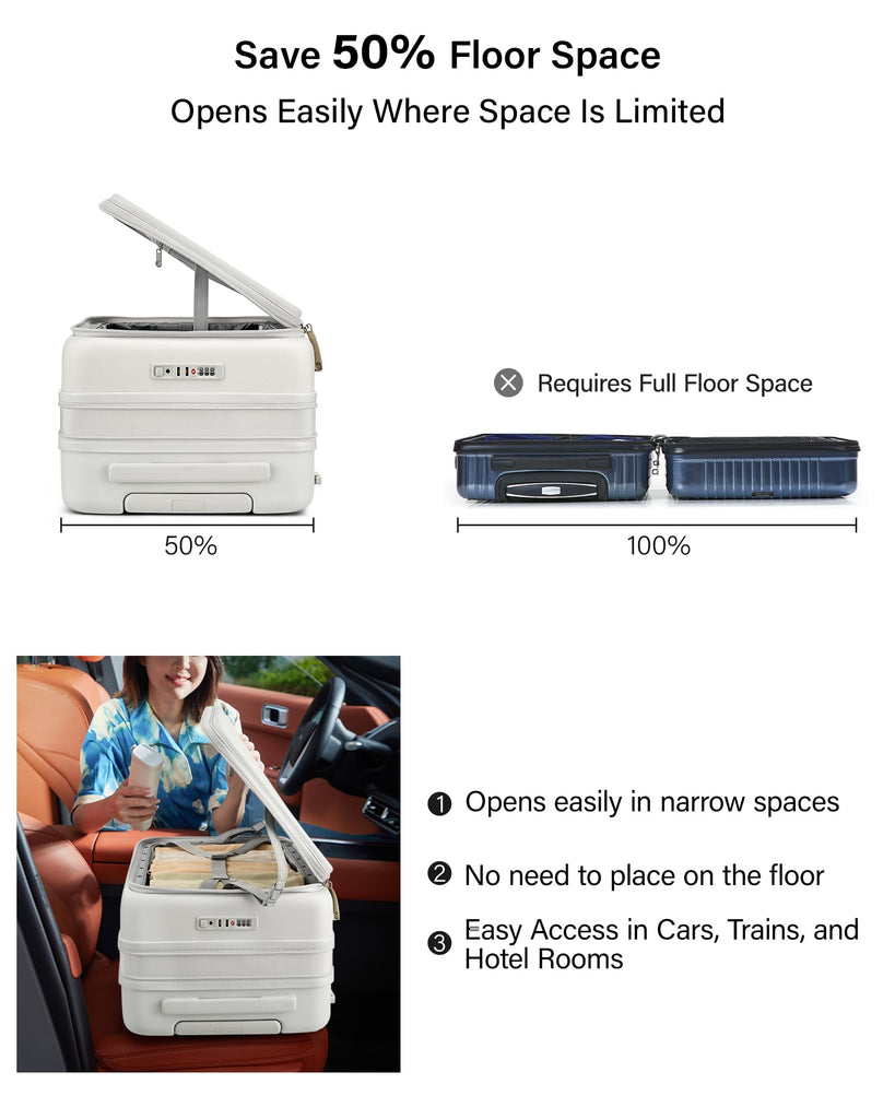 - Revolutionary Top Opening Trunk Design: Unlike traditional luggage, our Top Opening Luggage functions as true Trunk Luggage. Access contents vertically without floor space – perfect for tight airport queues or car trunks. Doubles as a sturdy storage solution at home