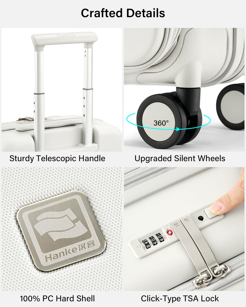 - Durable 3-Layer 100% PC Hard Shell: hanke hardside suitcase delivers exceptional impact resistance without the bulk. The shatterproof material prevents cracking. Lightweight yet 30% tougher than standard carry on luggage materials – perfect for rough baggage handling