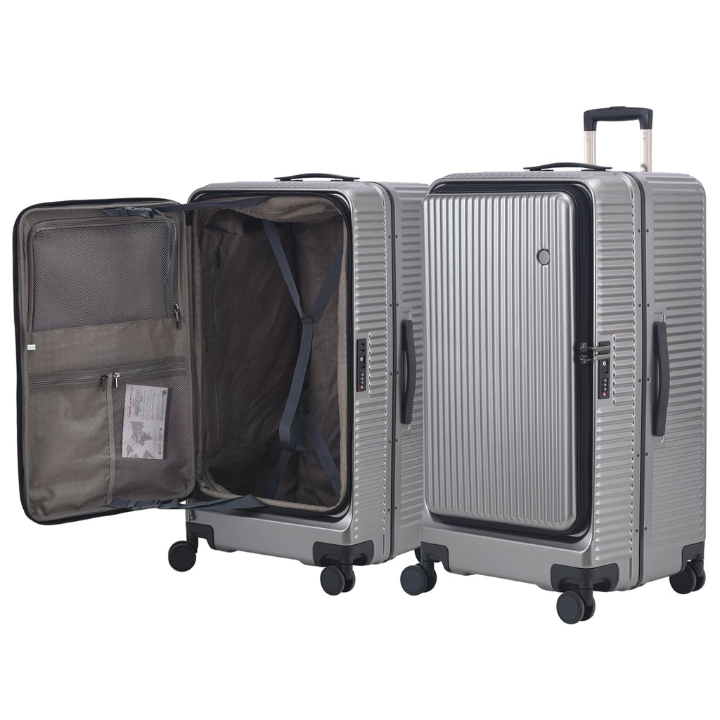 Kaleenie 29 Inch Aluminum Checked Luggage with Side Opening Zipper, 40 * 37 * 77cm, 113L, Lightweight Hardshell ABS+PC Suitcase with TSA Lock, 360° Universal Wheels, Dark Gray