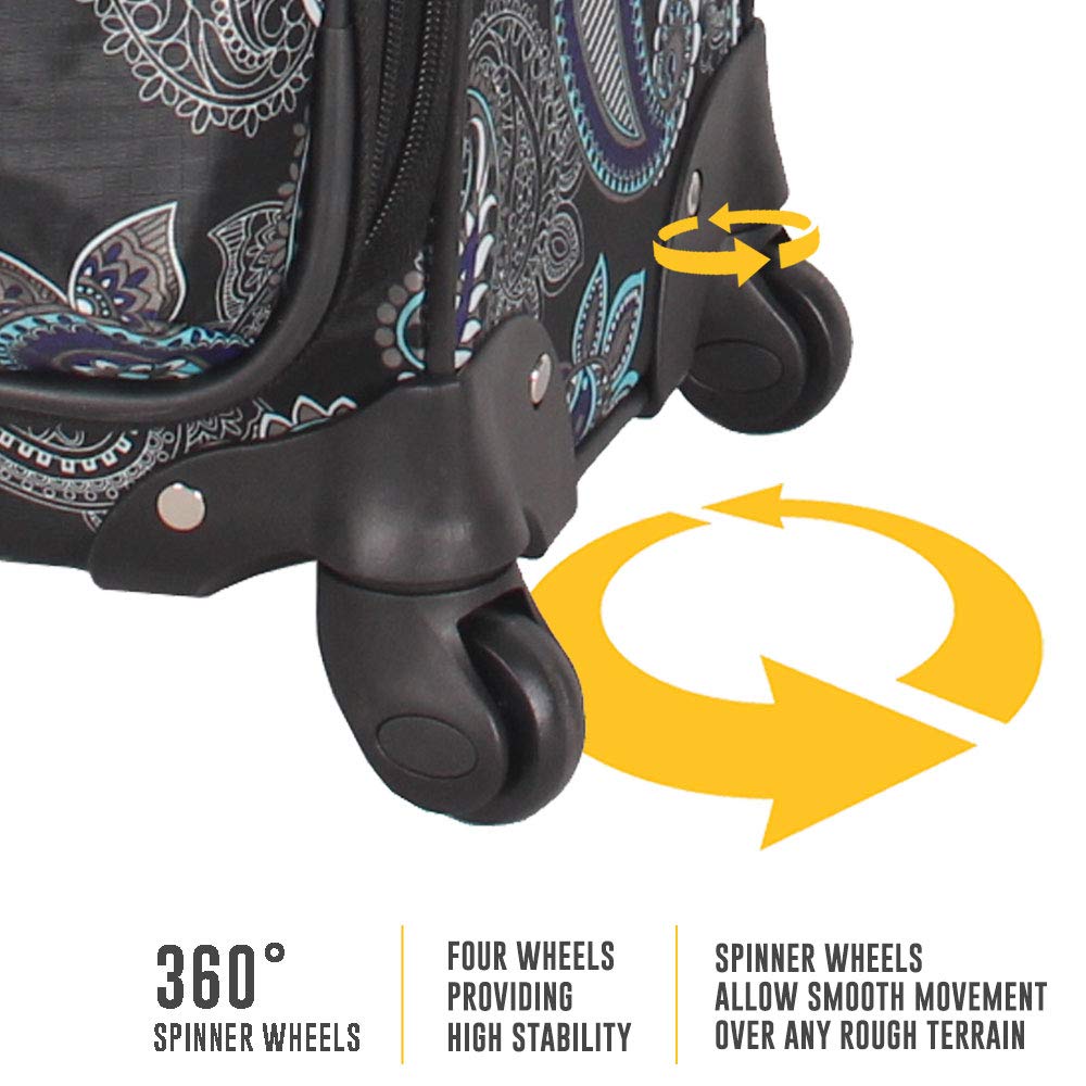 - BUILT FOR COMFORT AND CONVENIENCE; You can easily drag along the airport with its ergonomic handle ;The 8-spinner wheels system allow smooth, 360° degree movement over any rough terrain for complete mobility free-weight rolling