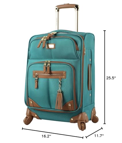 Steve Madden Designer Luggage Collection - Lightweight 24 Inch Expandable Softside Suitcase - Mid-size Rolling 4-Spinner Wheels Checked Bag (Harlo Teal Blue)