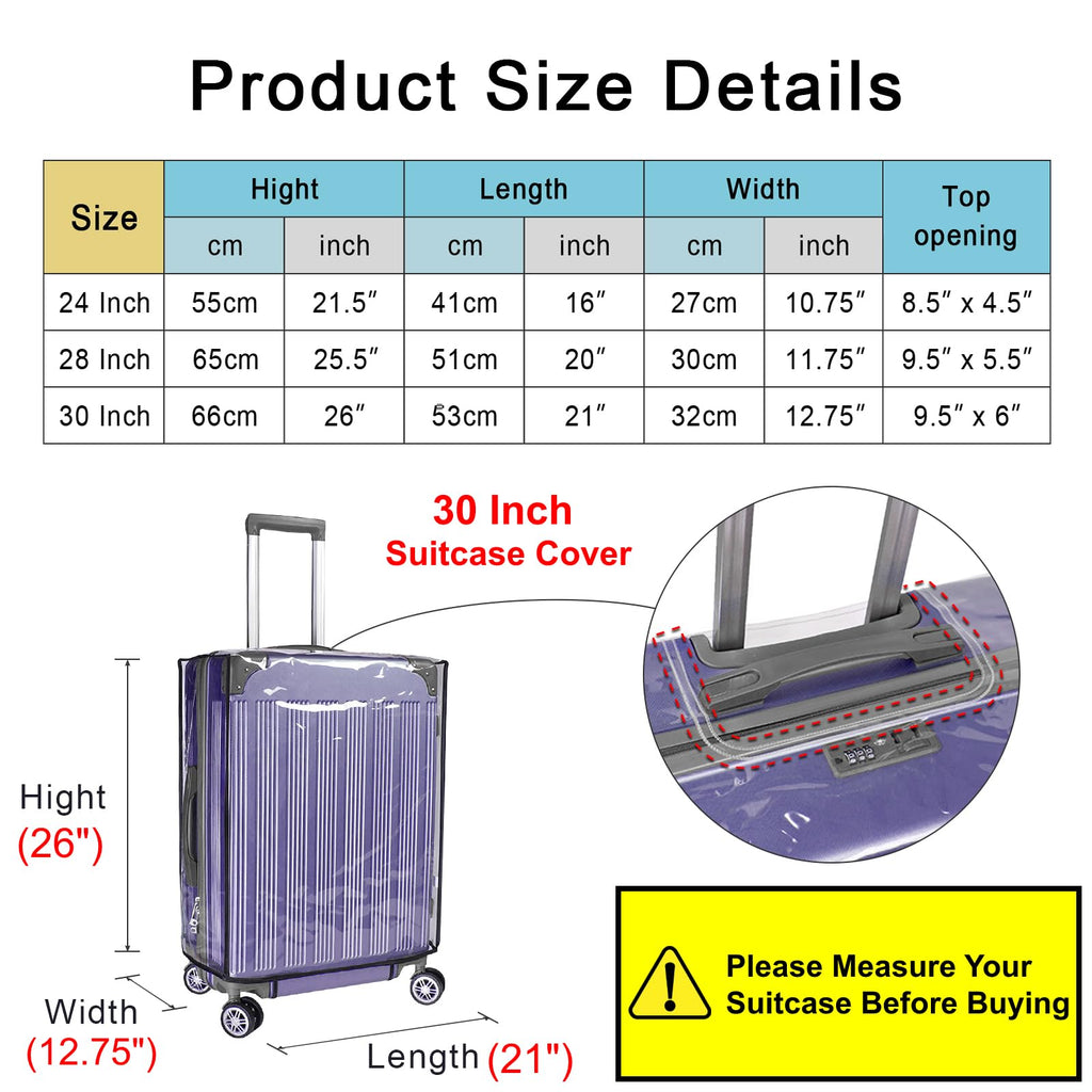 - 【Suitcase Protector】 This clear PVC luggage cover is specially designed for mainstream 30 inch luggage, protect your beloved luggage from stains and scratches during travel, and keep the luggage clean as new.