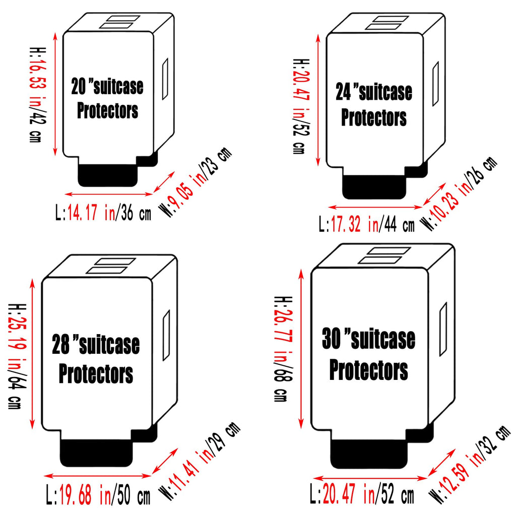 - 【20" Suitcase Cover】:Dimensions: 14.17" (L) × 9.05" (W) × 16.53" (H). Height does not include wheels.Please refer to the size chart and measure your luggage before purchasing .Compatible with 20 inch wheeled suitcases.