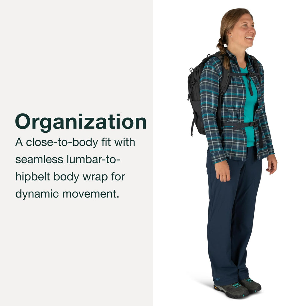 Brand: OspreyColor: BlackFeatures: Campus-Oriented Organization - Laptop and document sleeves (fits most 16-inch laptops), blinky light attachment, organization compartment and small zip compartments AirScape Backpanel - Lightweight, mesh-covered 3D-foam backpanel offers close-to-body fit for stability Front panel stretch mesh shove-it...