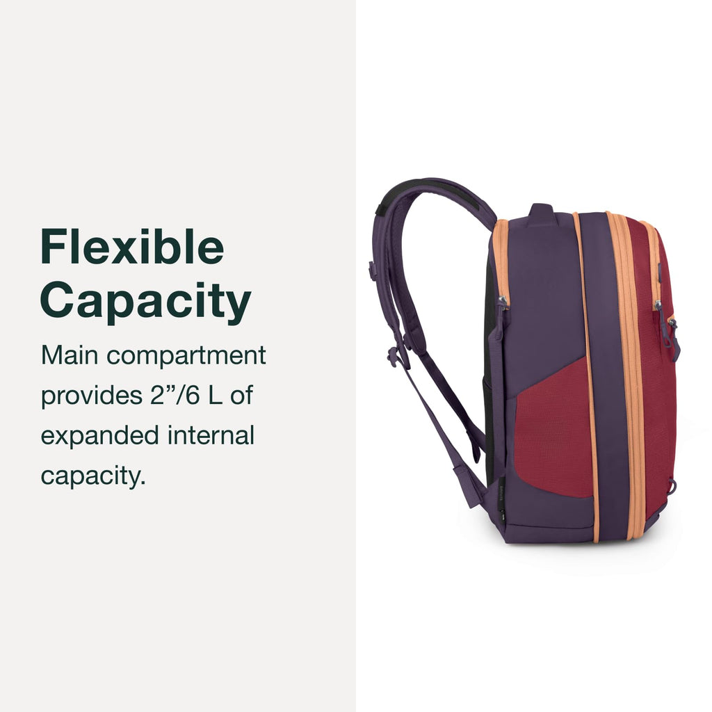 - Flexible Capacity - The main compartment expands 2 inches to add 6 liters of storage, letting you pack more when needed without sacrificing airline compliance