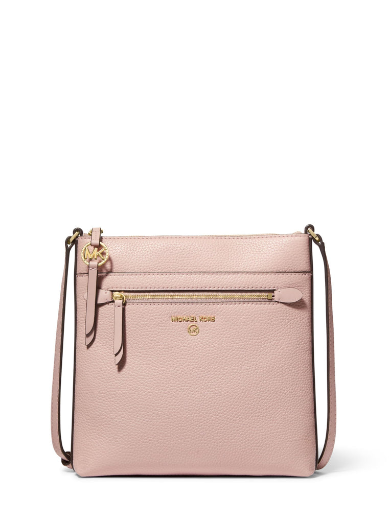 Michael Kors Jet Set Charm Small Flat Crossbody Bag, Gold-Tone Hardware/Pebble Leather/Soft Pink
