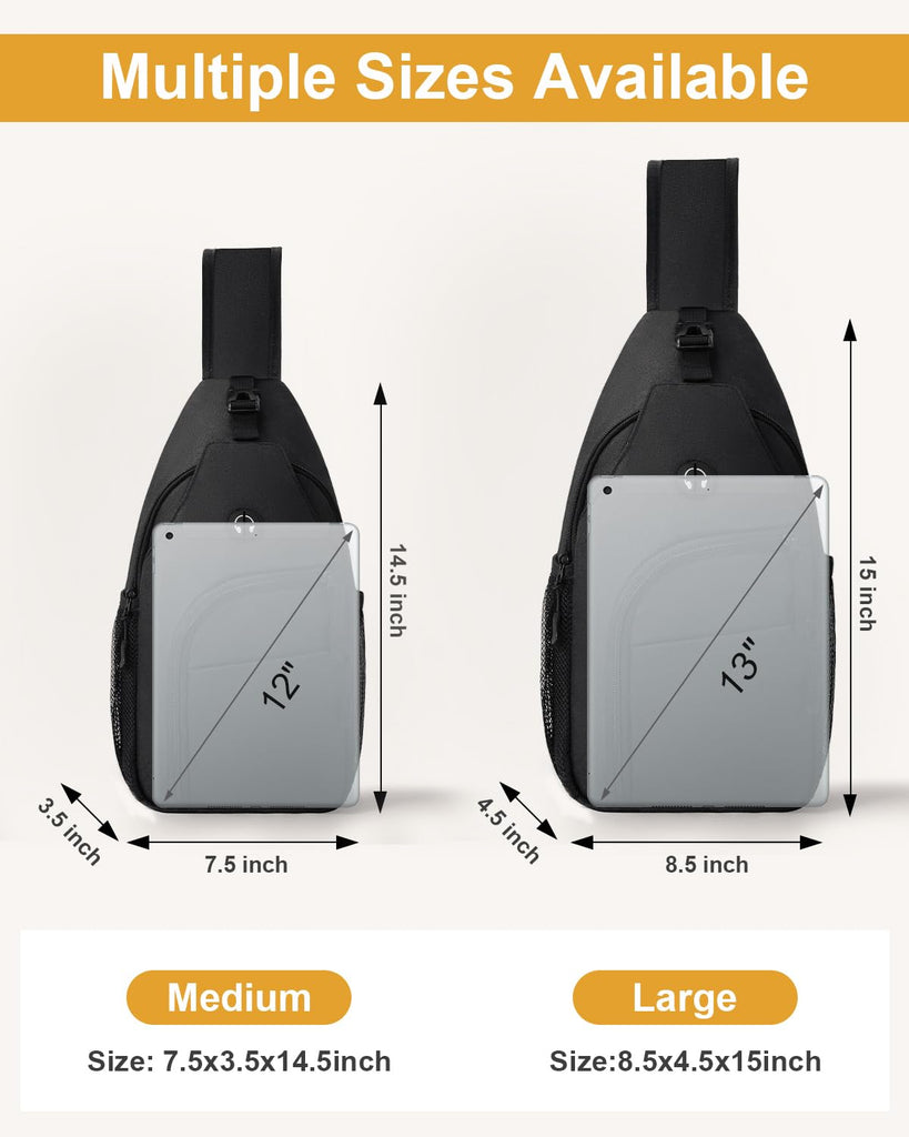 Pritent Crossbody Bags for Women Man Waterproof Sling Bag Backpack Trendy Casual Cross Body Bag with Convertible Shoulder Strap Chest Bag for Camping Hiking Travel Essentials (Black, Medium )