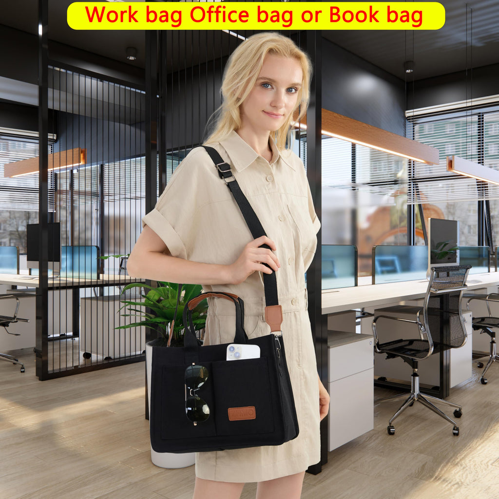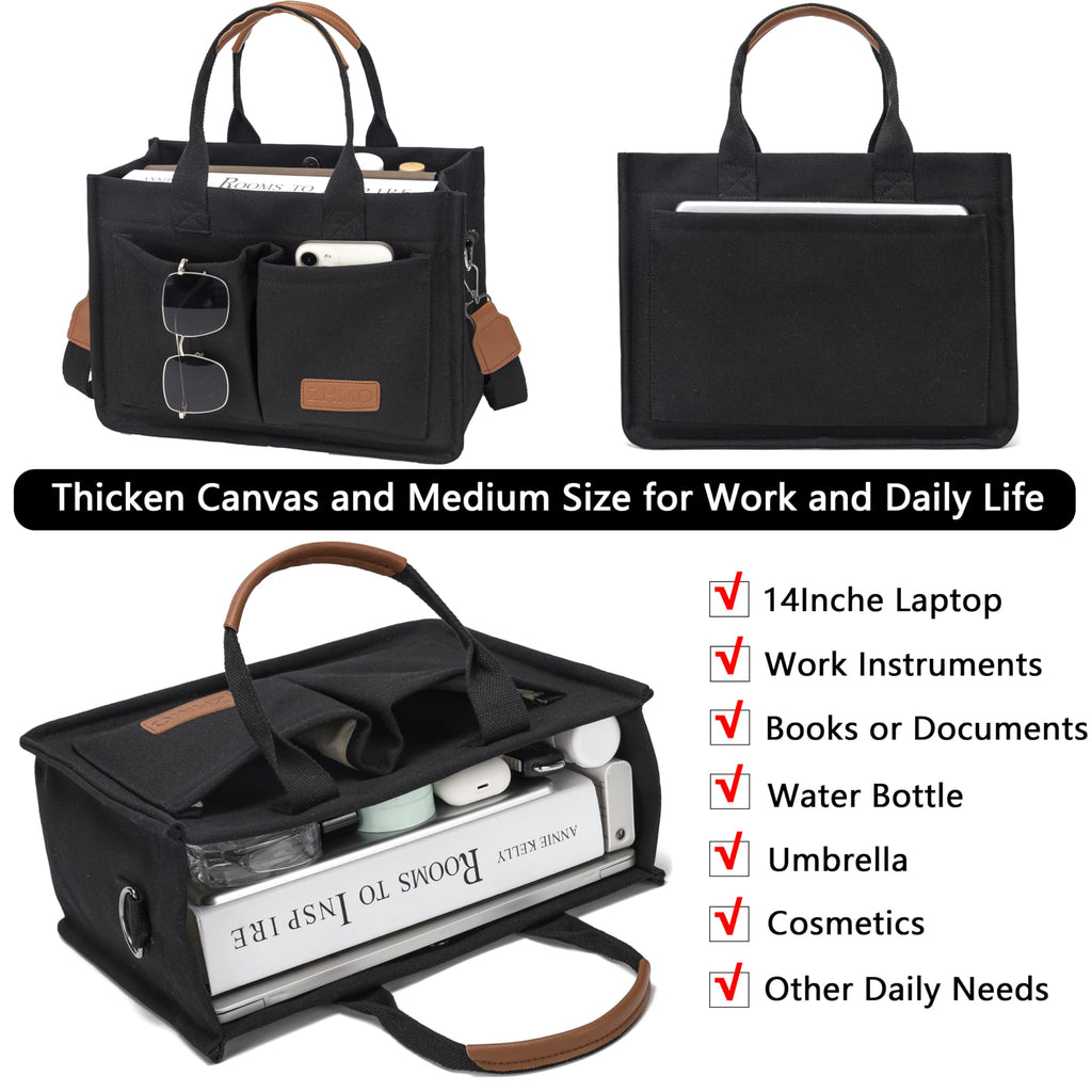Brand: ZHMOColor: Canvs Demure Black With CompartmentsFeatures: đź’—Spacious Compartments Organize Well:Designed with padded computer compartment for 14 inche laptop,inner cup holder for tumbler,2 front outside pockets for cellphone and keys items need quick access,1 big back outside pocket for ipad or magazine,Large main compartment for books,documents,cosmetics and other belongings. đź’—Durable...
