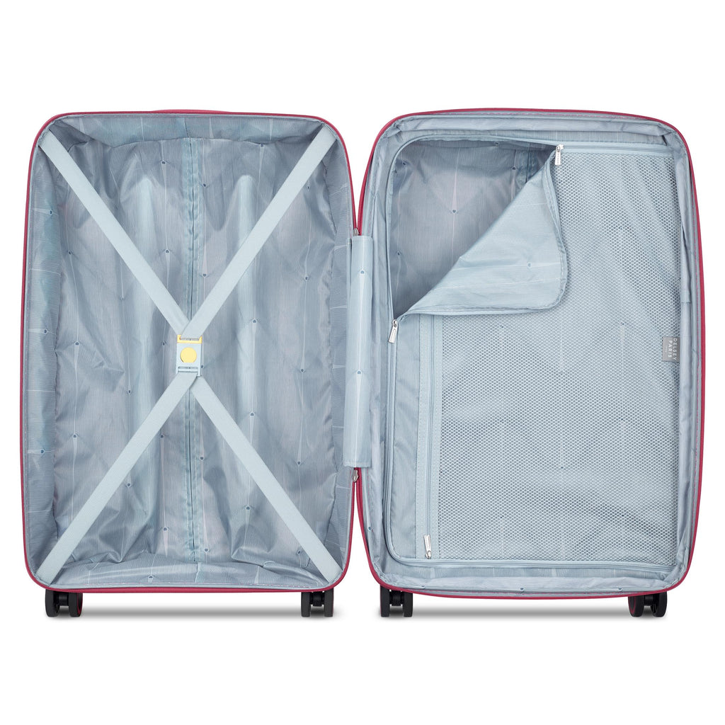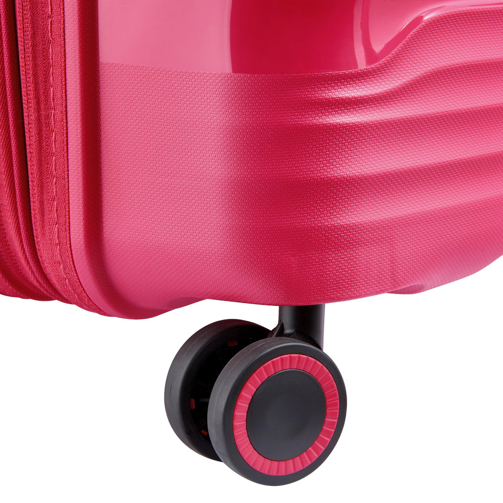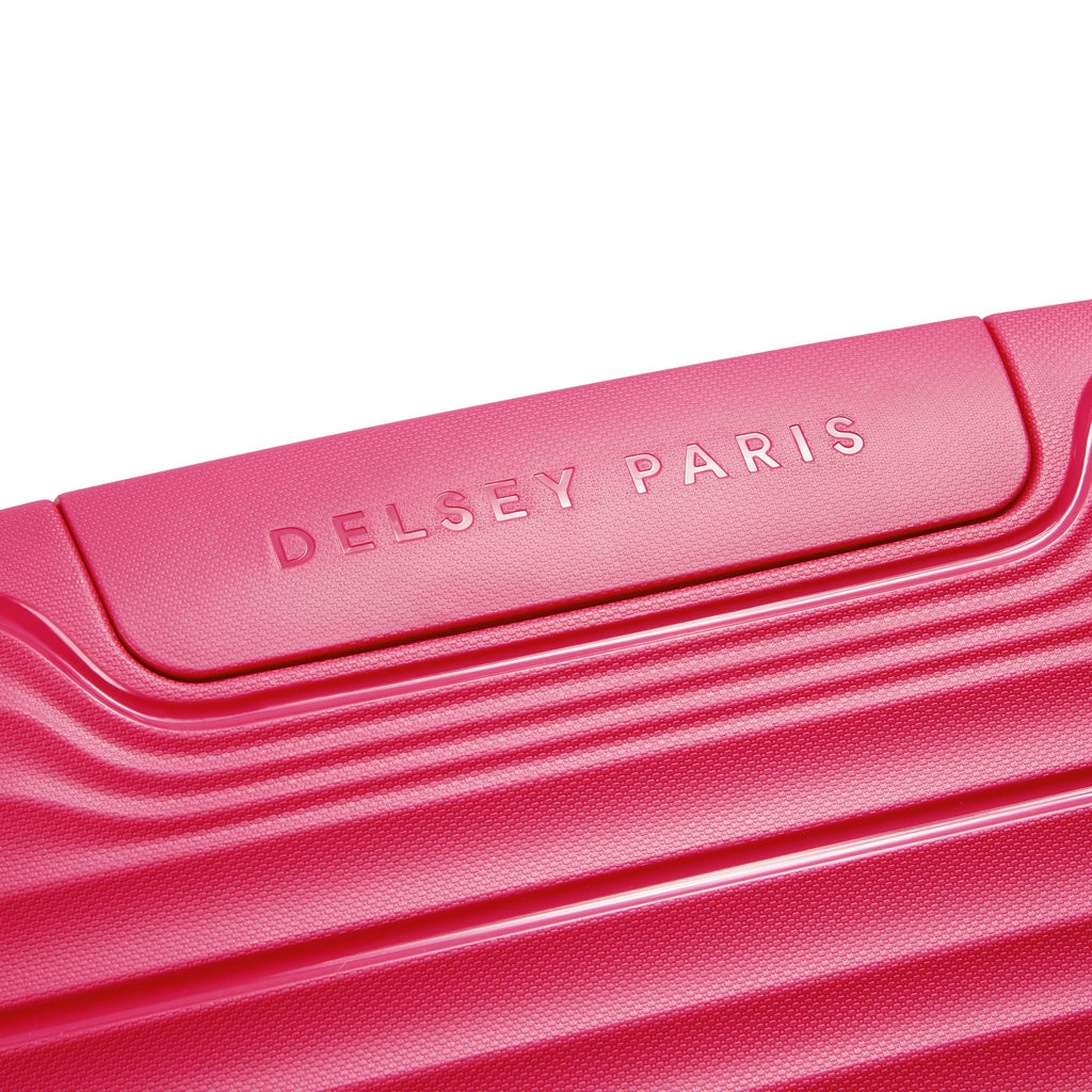 Brand: DELSEY PARISColor: Viva MagentaFeatures: Constructed of 100% polypropylene, a lightweight and impact-resistant material that helps protect against wear and tear Quiet rolling double-spinner wheels assure a stable base with multi-directional rolling with zero weight on your hand for easy travel; 3-dial TSA approved combination lock for security Expandable interior...