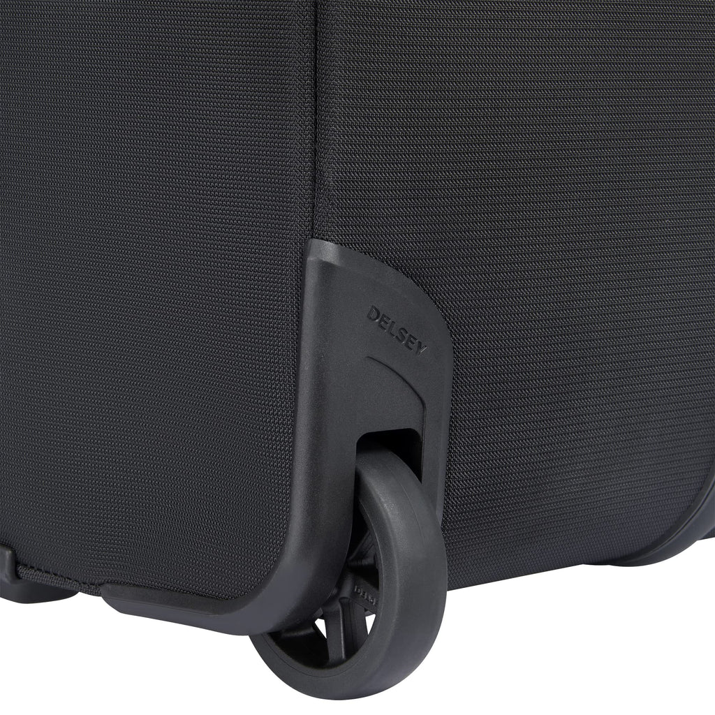 Brand: DELSEY PARISColor: BlackFeatures: Constructed of lightweight and durable DuraTec fabric that stands up to rigors of travel and looks great; hanging, removable bi-fold organizer included Two in-line wheels assure a stable base for easy travel; expands up to 2" for additional packing space; Exterior dimensions are 22.5 x 14.25...