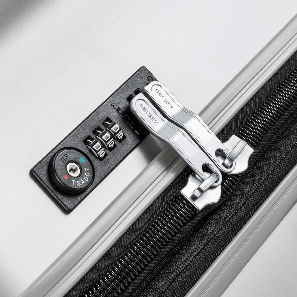 Brand: DELSEY PARISColor: SilverFeatures: Lightweight and durable polycarbonate shell that is extremely resilient to cracking or breaking; manufactured with a scratch resistant matte finish Four double spinner wheels assuring a stable base with multi-directional rolling with zero weight on your hand for easy travel Integrated 3-dial TSA approved combination lock...