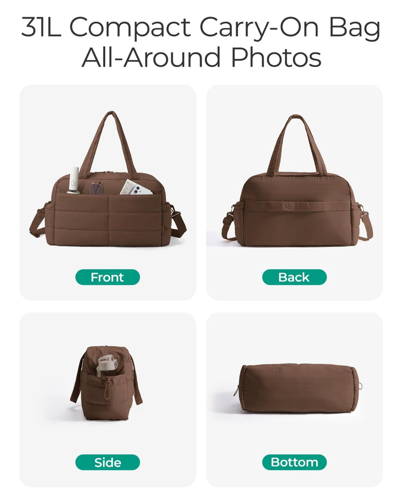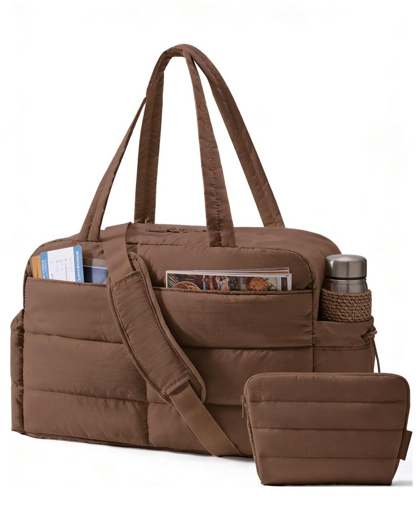 BAGSMART Gym Bag for Women, Lightweight Puffer Duffle Bag 2-PC Travel Bag, 31L Weekender Overnight Bag Quilted Carry On Tote Bag, Diaper Hospital Dance bag for Travel, Gym, Water Resistant