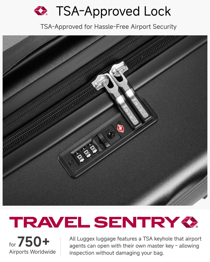 • Airline Approved: LUGGEX 20-inch carry-on luggage meets most airlines' 22x14x9 inch size restrictions, Enjoy seamless boarding with no requirement for additional luggage handling.
