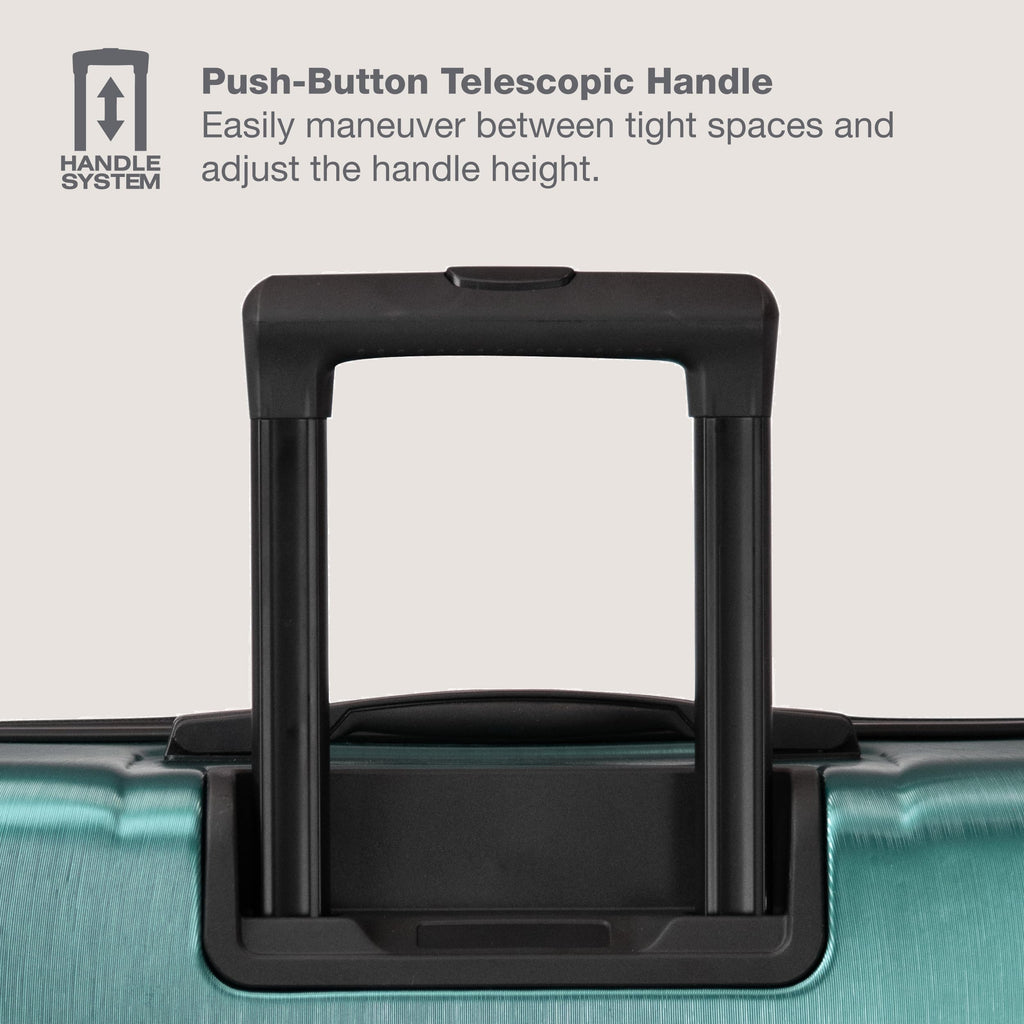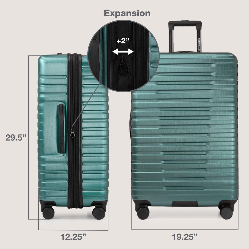 Brand: U.S. TravelerColor: TealFeatures: RUGGED DURABLE HARDSHELL: water-resistant and impact-absorbing hard shell, keeping your belongings protected through rough handling and rainy travels. EASY PORTABILITY: 360-degree spinner wheels let you glide your luggage upright, reducing strain on your arms while ensuring smooth, effortless movement across any terrain. MULTI-STAGE ALUMINUM HANDLE: Retractable...