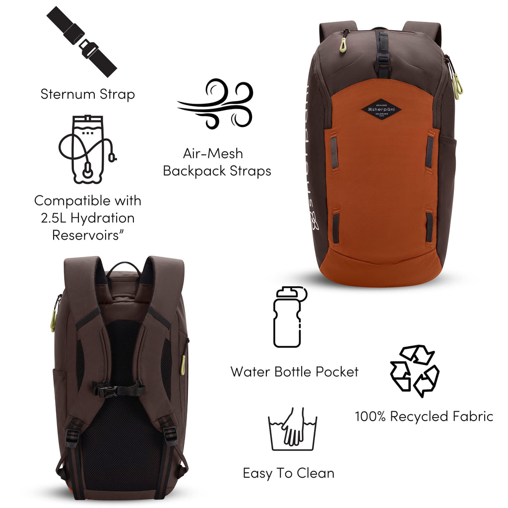 Sherpani Switch, 15L Lightweight Travel Hiking Backpack, Hydration Backpack, Backpack Purse for Women, Daypack for Women, Fits 13 Inch Laptop (Clay)