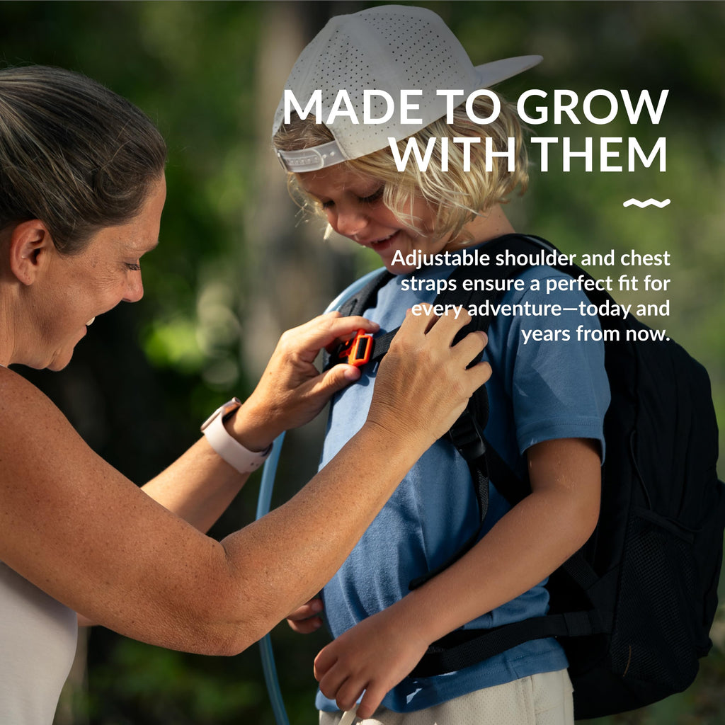 - ADJUSTS AS THEY GROW - Featuring adjustable shoulder and chest straps, this hydration pack for kids grows with your child—ideal for hiking, camping, or biking.