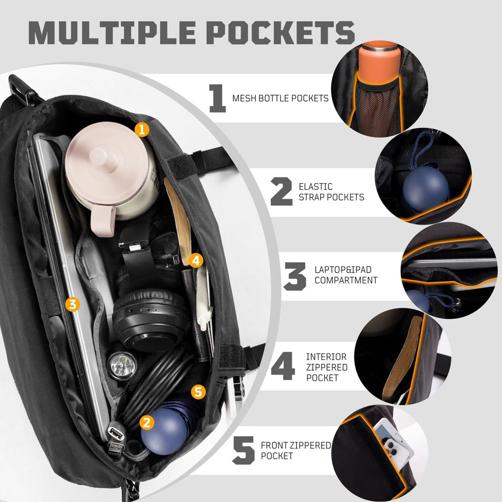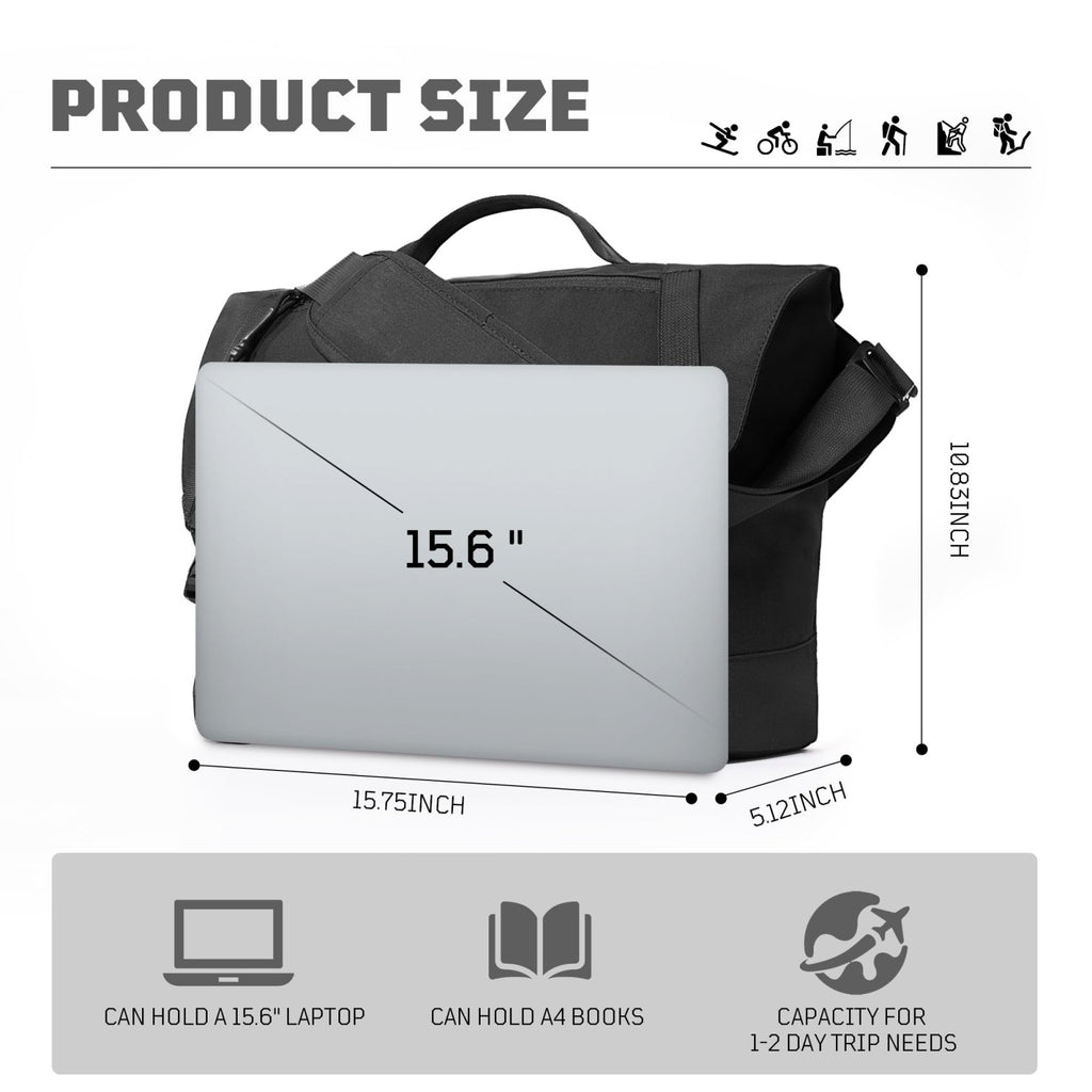 - LARGE CAPACITY & MULTI-POCKETS: the laptop messenger bag is designed with various practical pockets. Front : 1 x Zipper pocket on the flap; 1 x Zipper pocket under the flap. Inner: 1 x Main compartment, 2 x Padded compartment for a 15.6-inch laptop and compitable with ipad; 1 x Zipper pockets;2 x Inner open pouch; 2 x Inner elastic side umbrella or water bottle pockets.