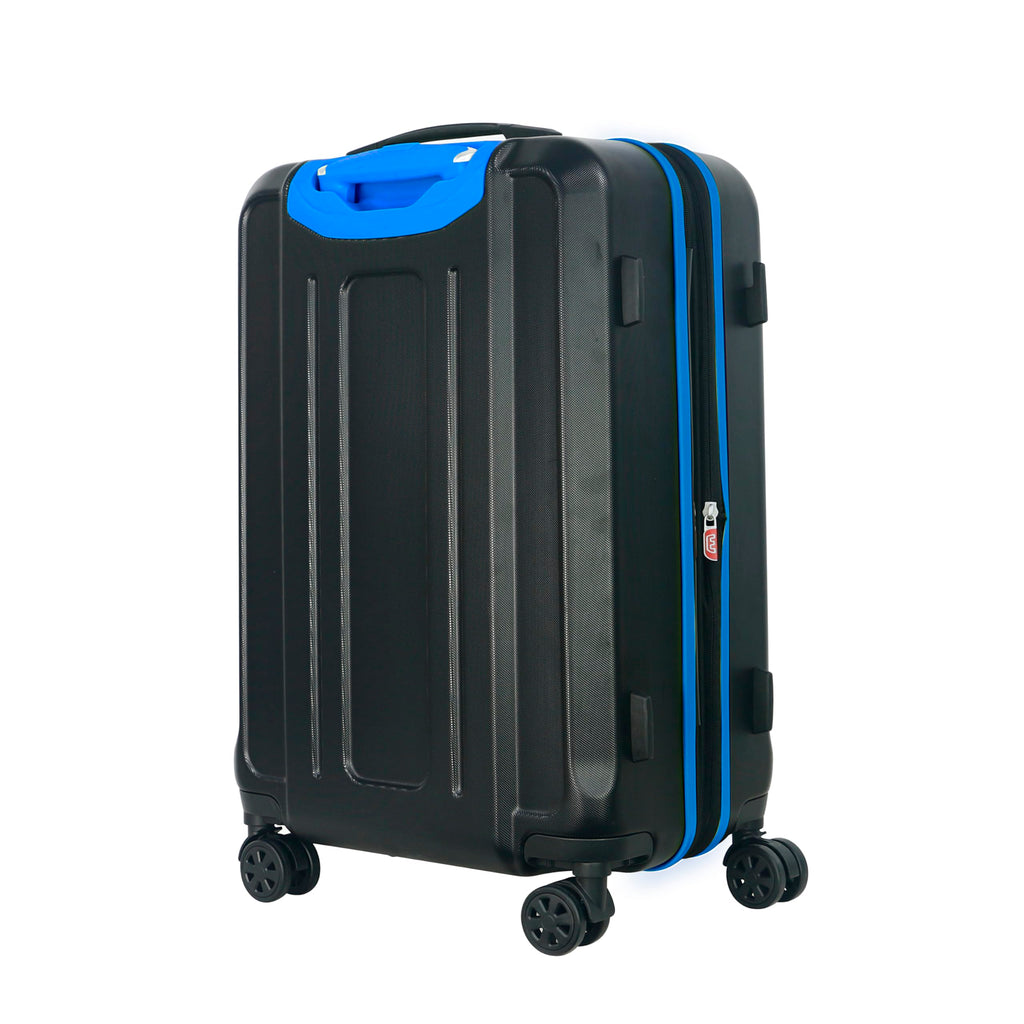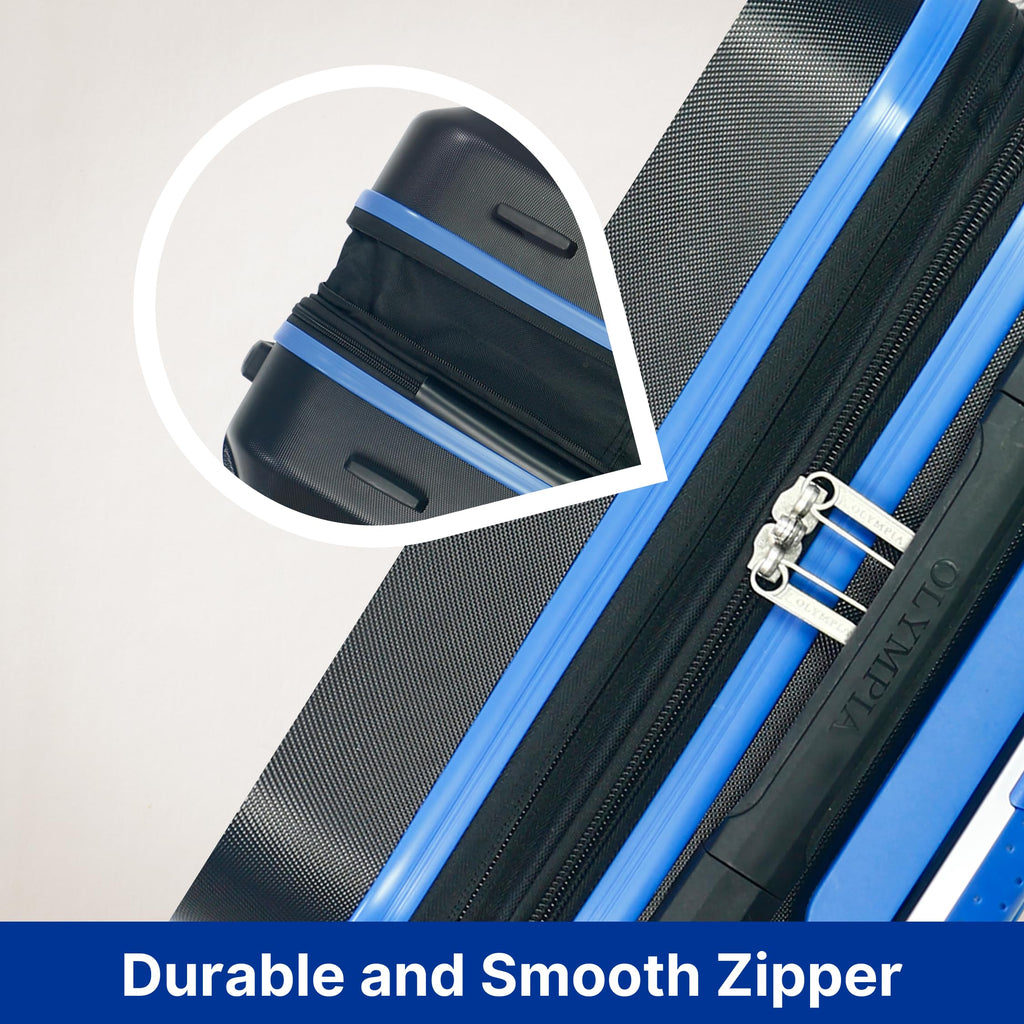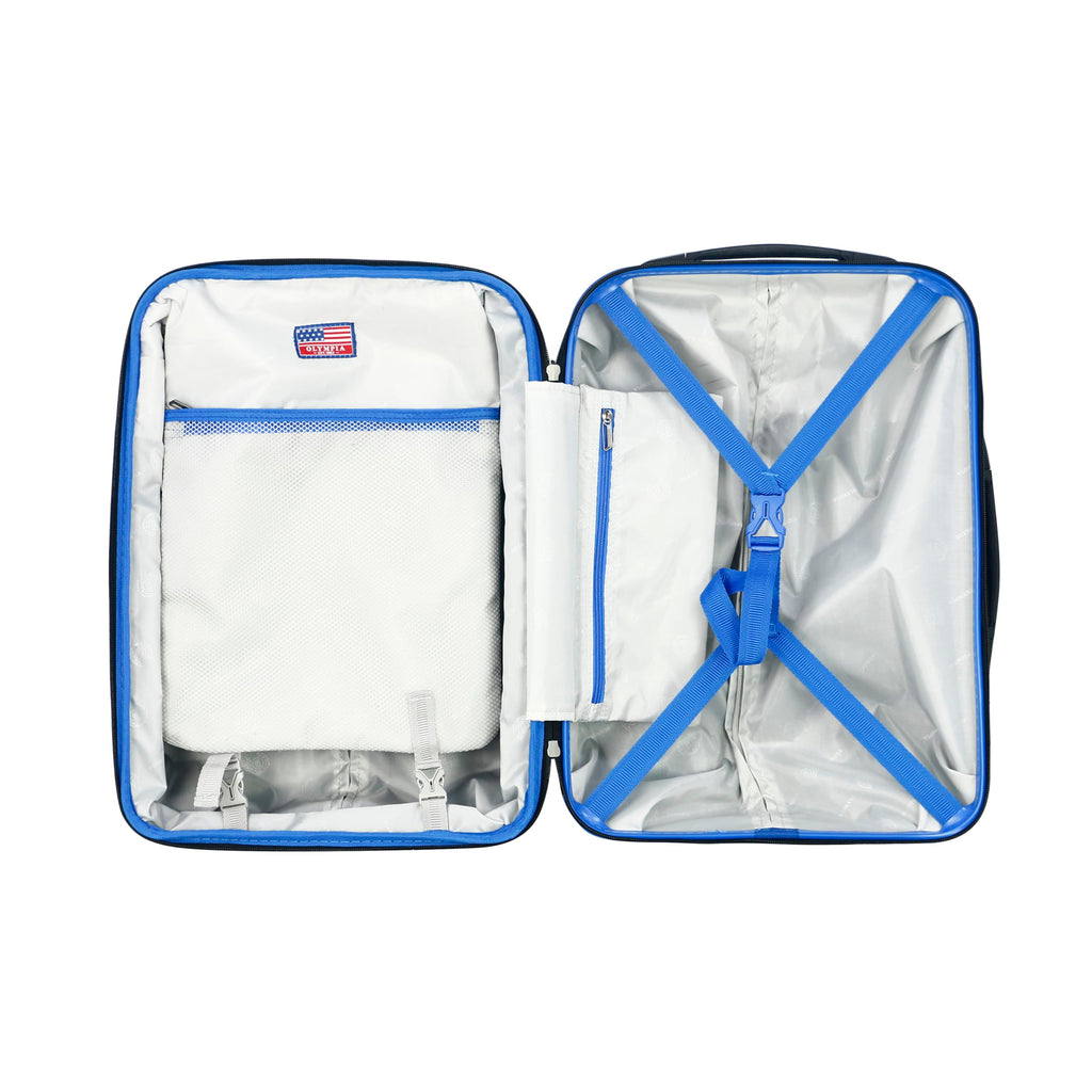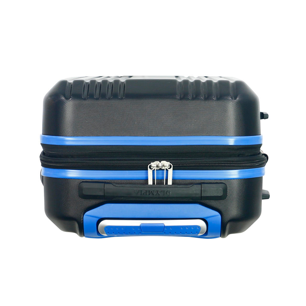 Brand: Olympia U.S.A.Color: Black/BlueFeatures: 22-INCH CARRY ON LUGGAGE – This sleek suitcase is the perfect travel bag you’ll want to take anywhere you go. Made with high-quality material constructed of durable 100 percent ABC plastic, provides superior strength and exterior toughness, while remaining lightweight, dent resistant, scratch resistant and long-lasting....