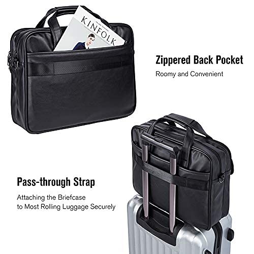 Brand: seyfocniaColor: BlackFeatures: LARGE CAPACITY - The men laptop briefcase includes external two pouches and two pen slots and inside several slots in front large pocket with adhesive hook and loop tape under flap over, storage penholders, documents, binder, power cords, mouse, two main zipper Pocket with foam padded sleeve...