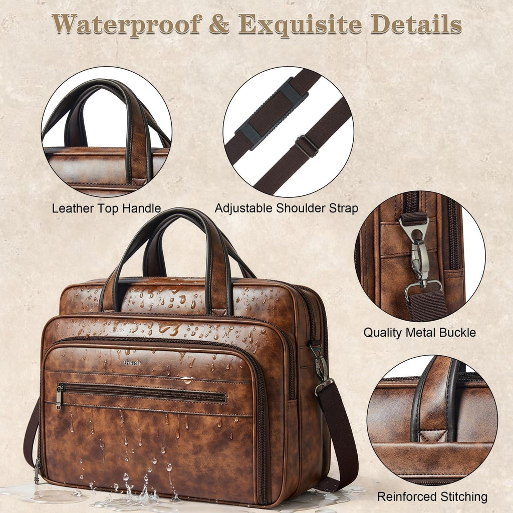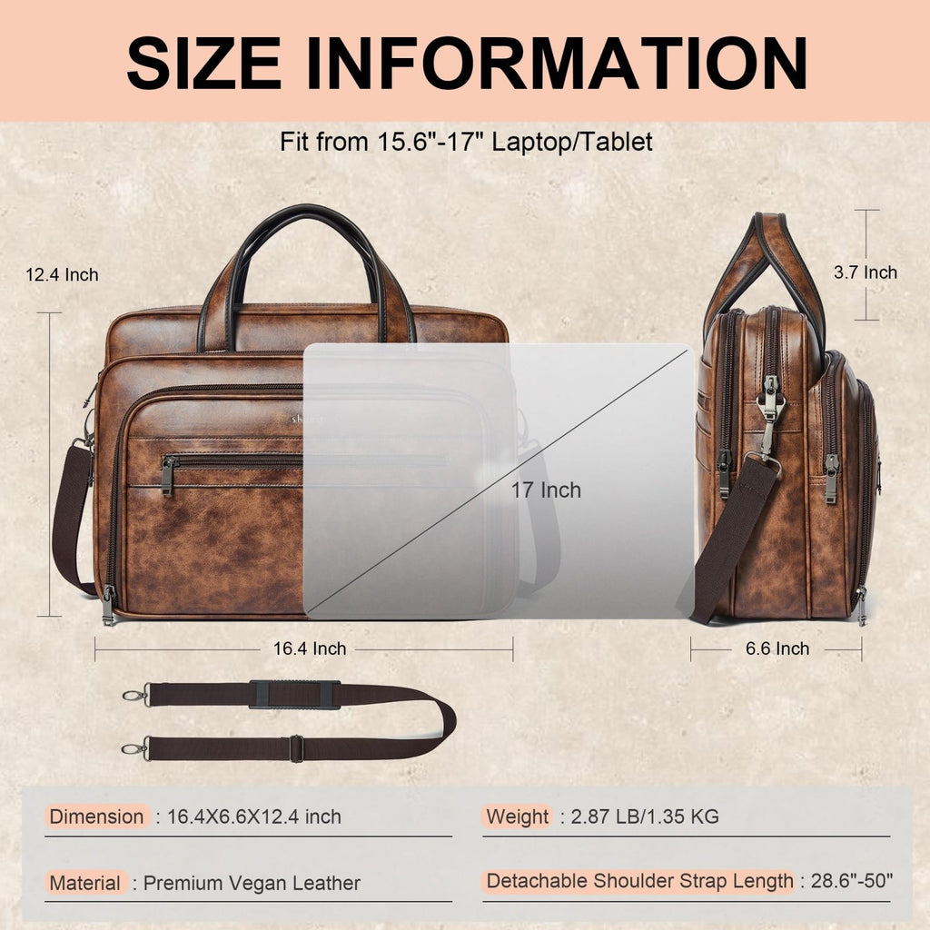 Shrrie Leather Messenger Bag for Men&Women 17 Inch Vegan Leather Laptop Bag,Water-Resistant Large Shoulder Satchel Office,Work