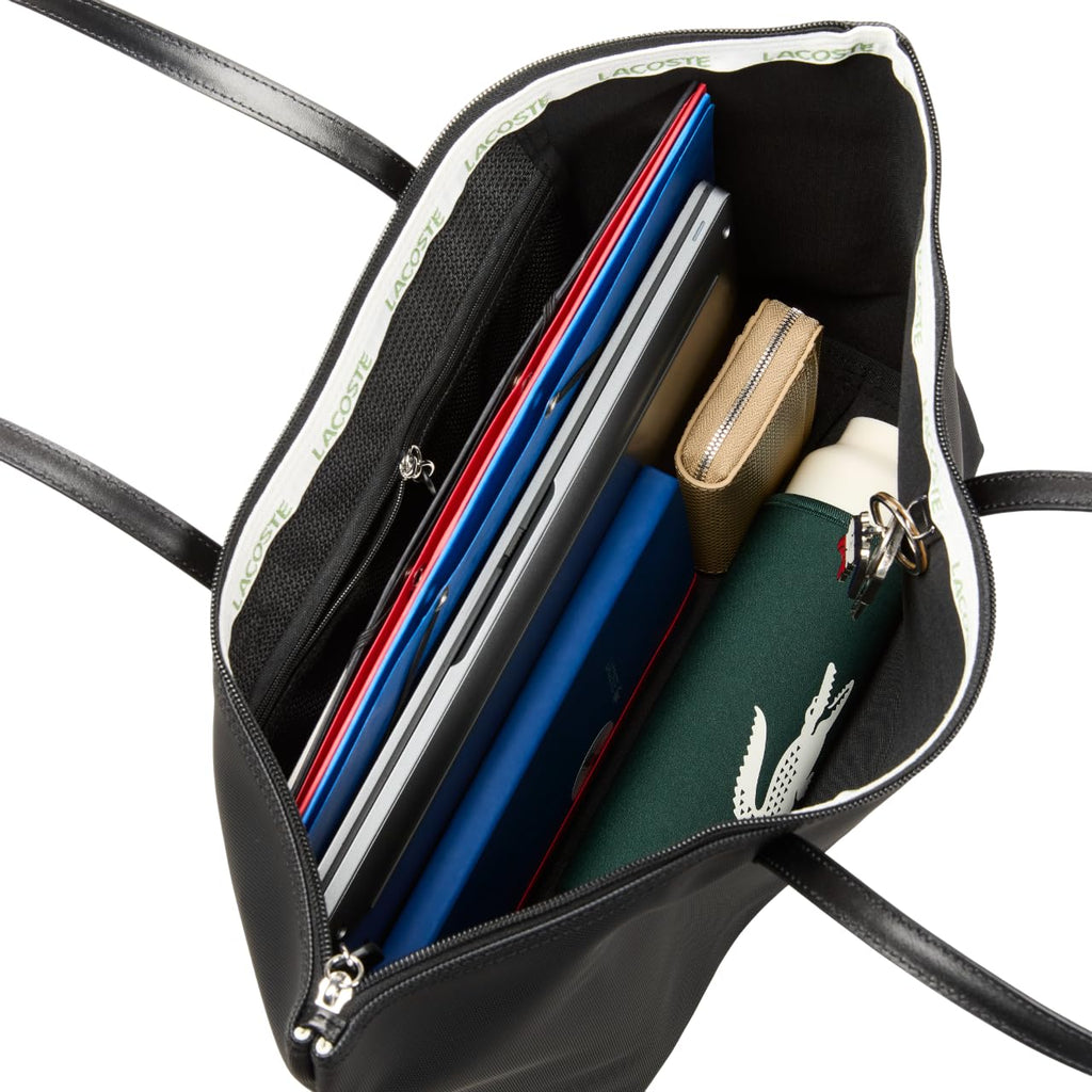 - FUNCTIONAL DETAILS: Equipped with an interior key ring and finished with a Lacoste zip pull, this tote is as practical as it is stylish.