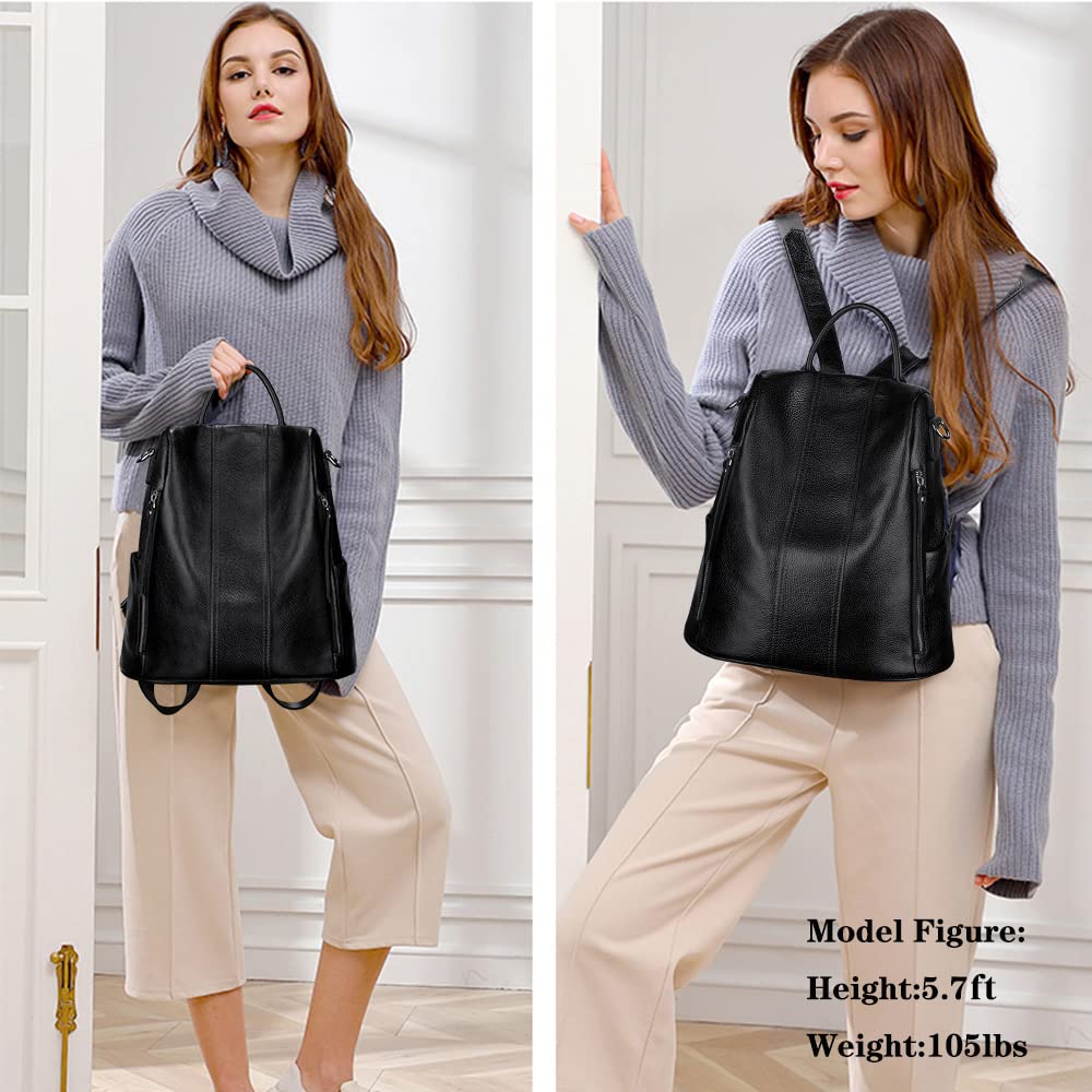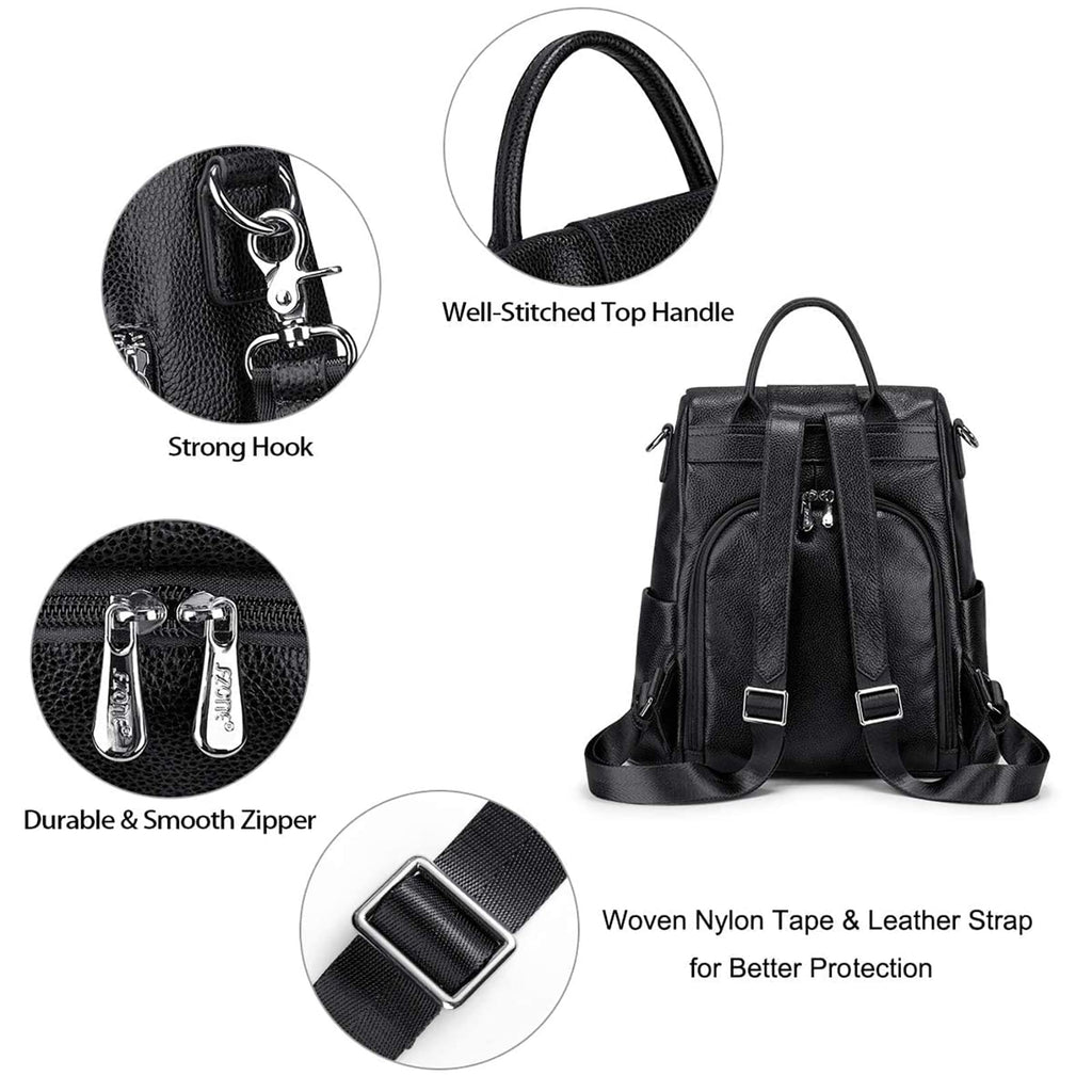 S-ZONE Leather Backpack Purses for Women Antitheft Rucksack Shoulder Bag Medium
