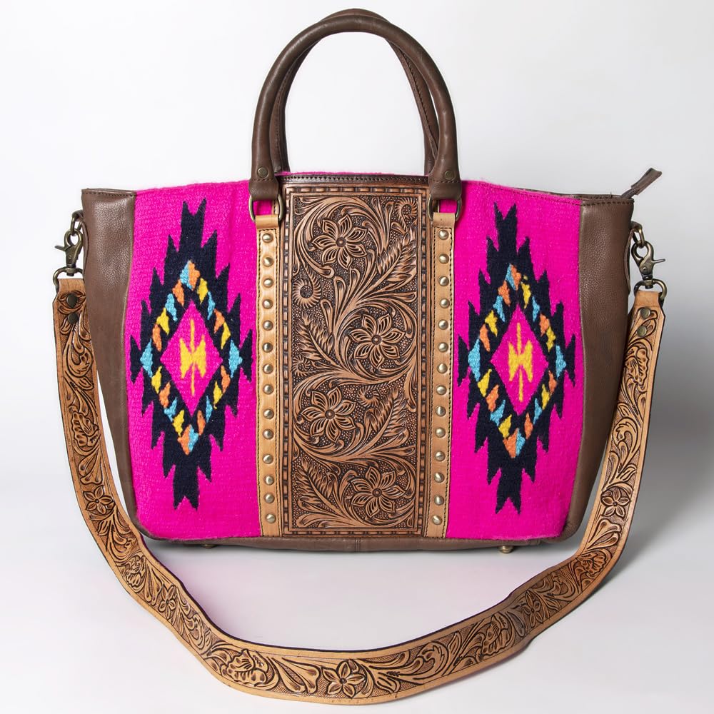 American Darling Tote Hand Tooled Saddle Blanket Genuine Leather Western Women Bag Handbag