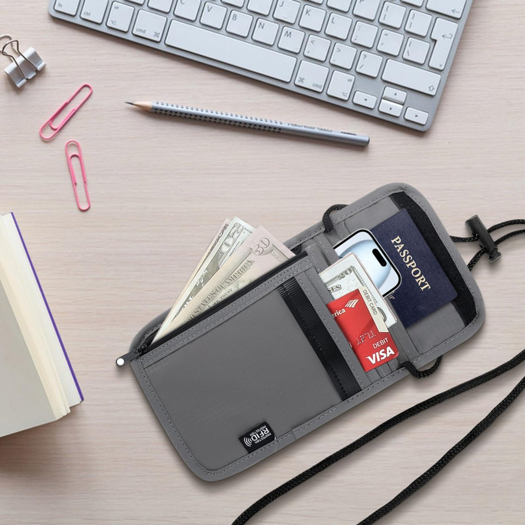 Likesing 5.5" L x 7.9" W Travel Neck Wallet, RFID Blocking Passport Holder, Security Lightweight Passport Travel Wallet, Neck Pouch Gifts for Women Men(Grey)