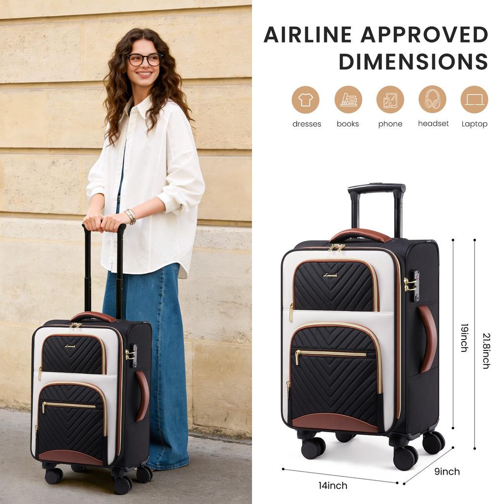 Brand: LOVEVOOKColor: Black-WhiteFeatures: 【Airline Approved & Overhead Bin Size】Designed to meet the 22x14x9 inch requirements of major airlines including Delta, United, American, and Southwest. This carry-on luggage fits perfectly in the overhead bin, ensuring a hassle-free boarding experience. The lightweight construction helps you avoid extra overweight fees 【Inclusive 3-Piece Packing...