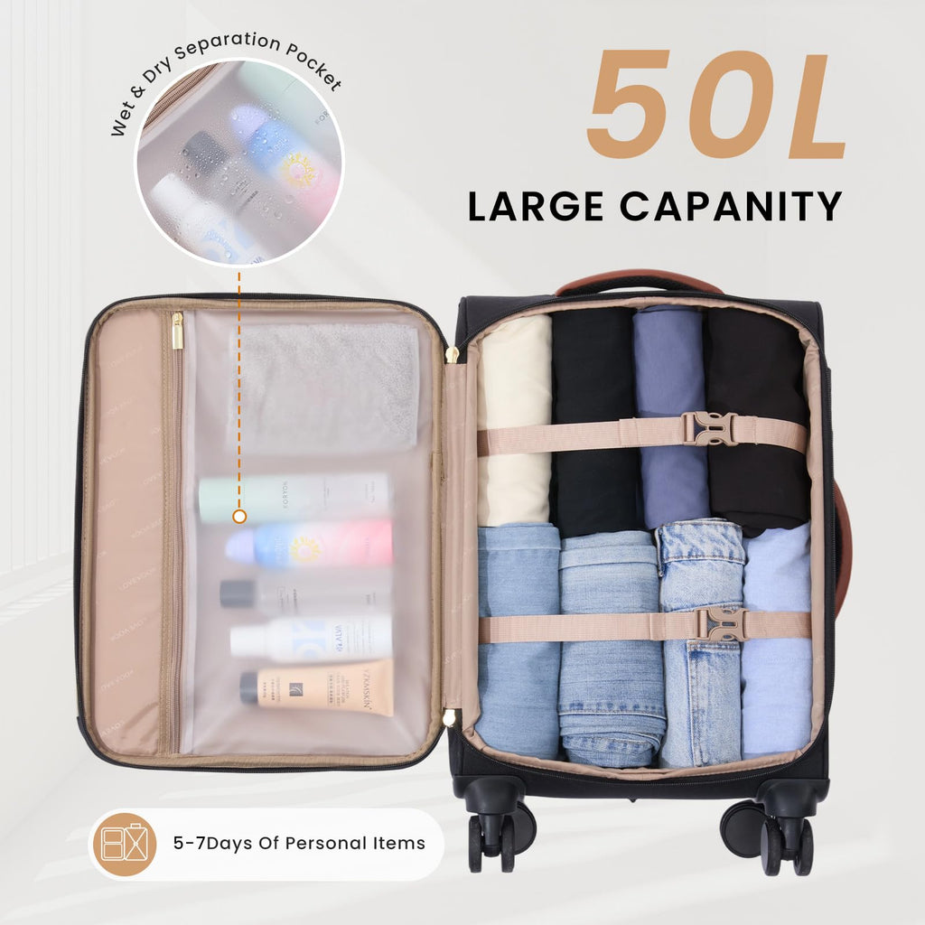 LOVEVOOK 20 Inch Carry On Luggage 22x14x9 Airline Approved, Lightweight Softside Carry-on Suitcase with Spinner Wheels & TSA Lock, Water-Resistant Travel Luggage for Men Women