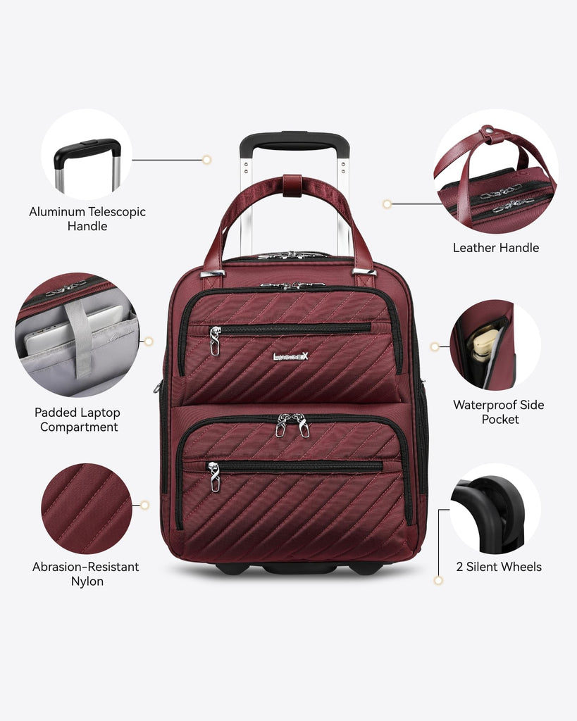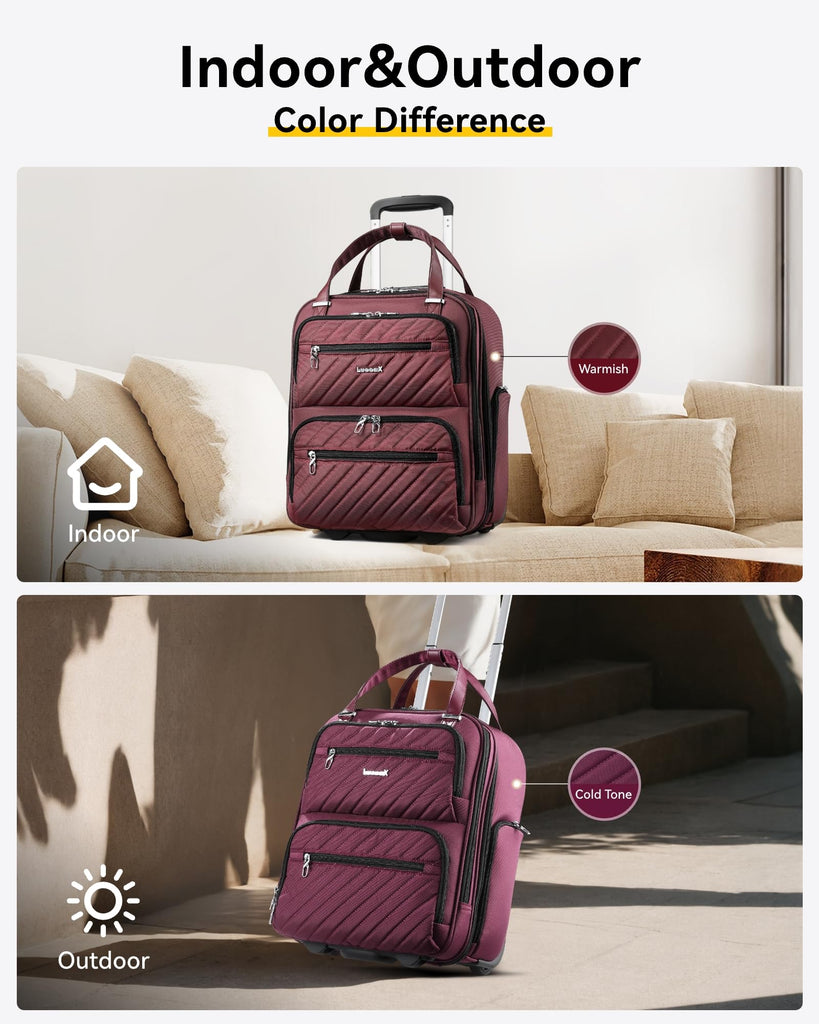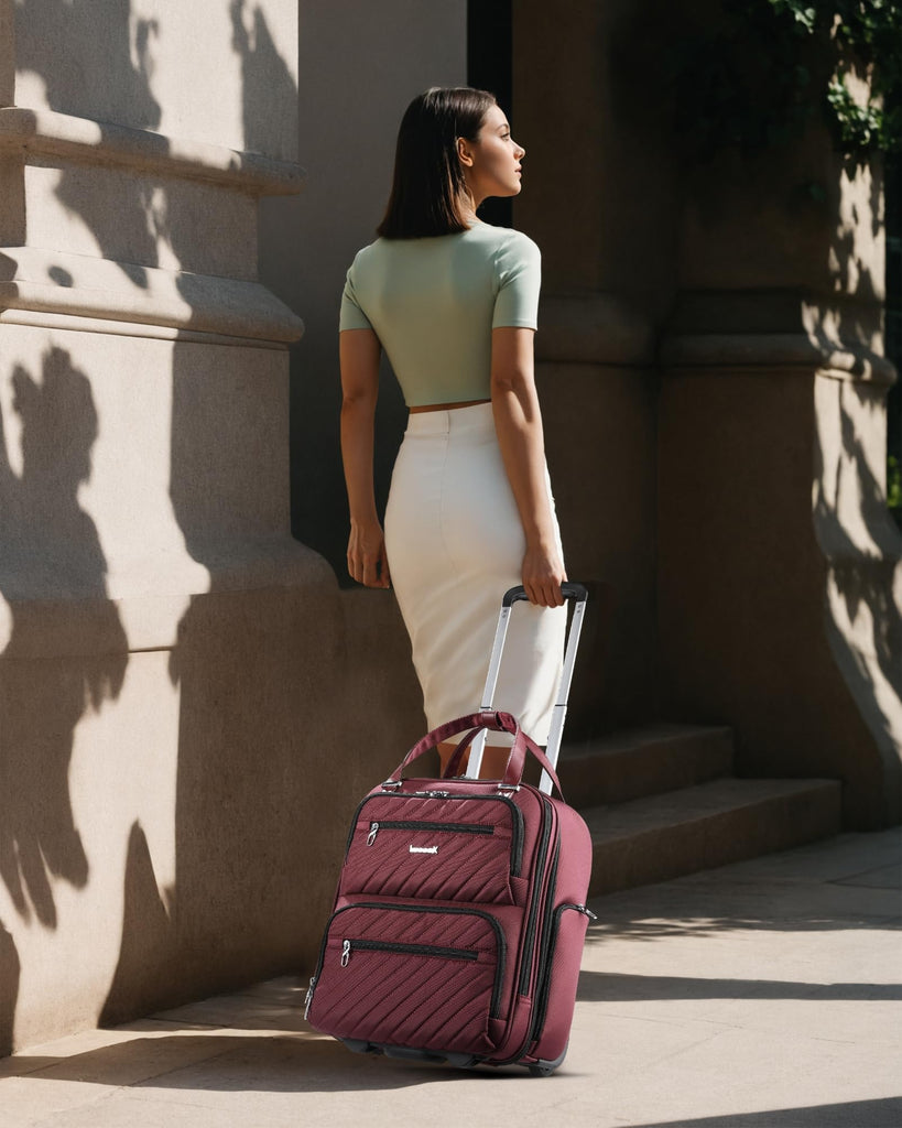 - Airline Approved: The rolling underseat bag (15.7"x13"x7.7") meets most airlines' size requirements, fitting perfectly under the seat or in the overhead bin. To improve your travel experience, we've made subtle design refinements-the actual product may vary slightly from images. For optimal use, please avoid overpacking in the front pocket.