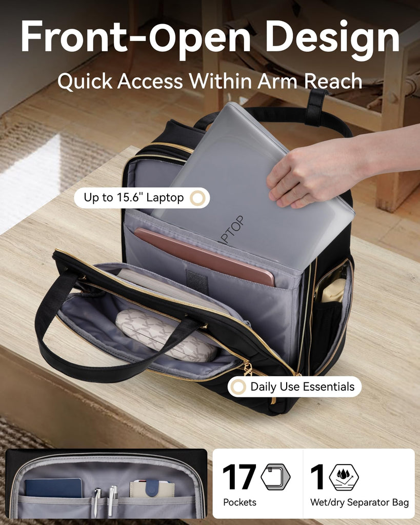 - Versatility at Its Peak: Easy access to essentials like air ticket, pens, and power banks from front organizers. Safely house your 15.6-inch laptop in the padded compartment. With a spacious main compartment for clothes and toiletries, it's ideal for overnight trips, ensuring you're always ready for a quick getaway.