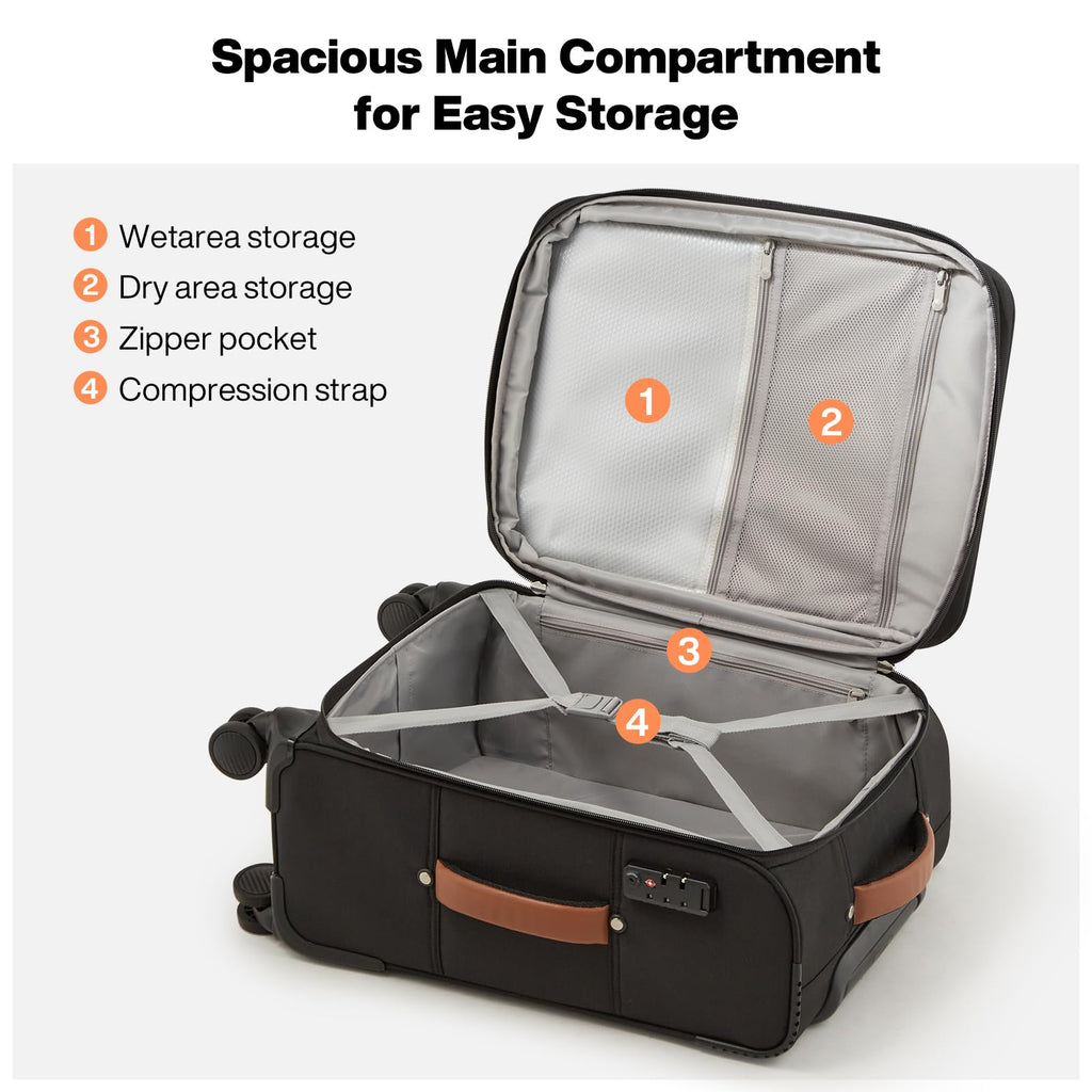 Brand: mixiColor: BlackFeatures: 【Softside Carry On Luggage】Dimensions: 21.65 x 14 x 9 inches (including wheels), weight only 8 lbs. This carry-on luggage perfectly fits the overhead bin space of most airlines. An ideal choice for business trips and casual travels. Mixi patent design, focus on luggage industry over 10 years,...