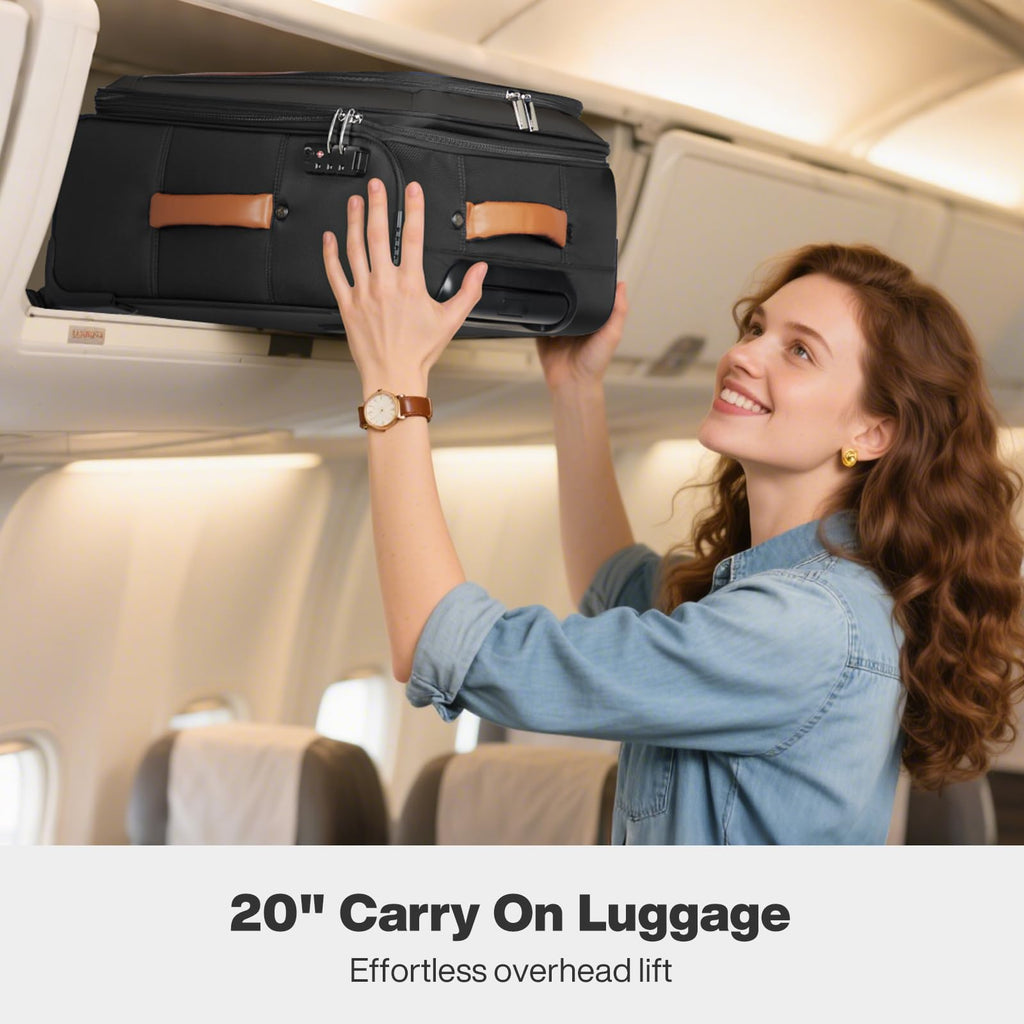 - 【High-end Quality】Made of high-quality waterproof and scratch-resistant polyester fabric, this soft-sided carry on suitcase is built to endure the wear and tear of frequent travel. Equipped with reinforced stitching and smooth zippers, it ensures long-lasting durability.