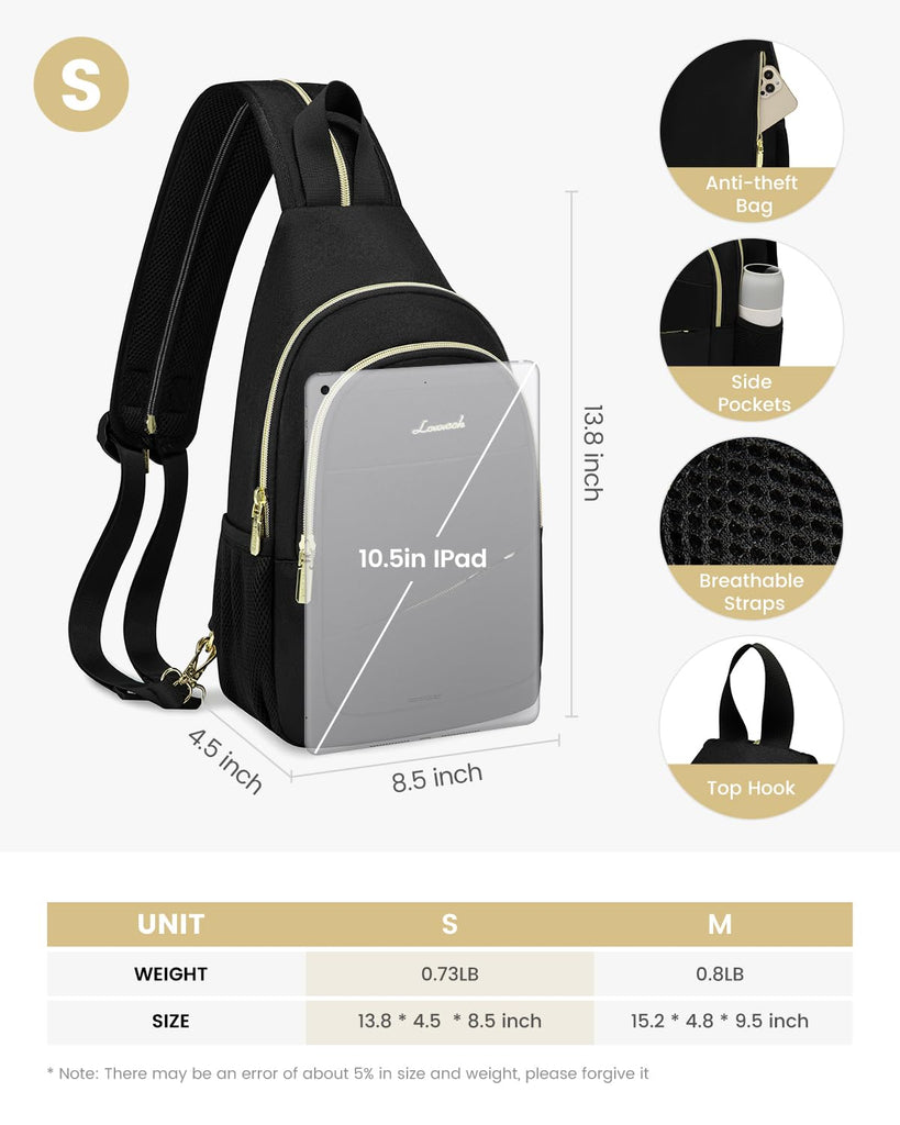 Brand: LOVEVOOKColor: BlackFeatures: 【VERSATILE AND ADAPTABLE】 Carrying this women's sling bag feels good because it can be easily transformed into a small backpack or crossbody bag. Ideal for travel, outdoor activities, or sightseeing. This bag adapts to your needs, not the other way around. 【DURABLE AND RELIABLE】 Constructed with water-resistant...