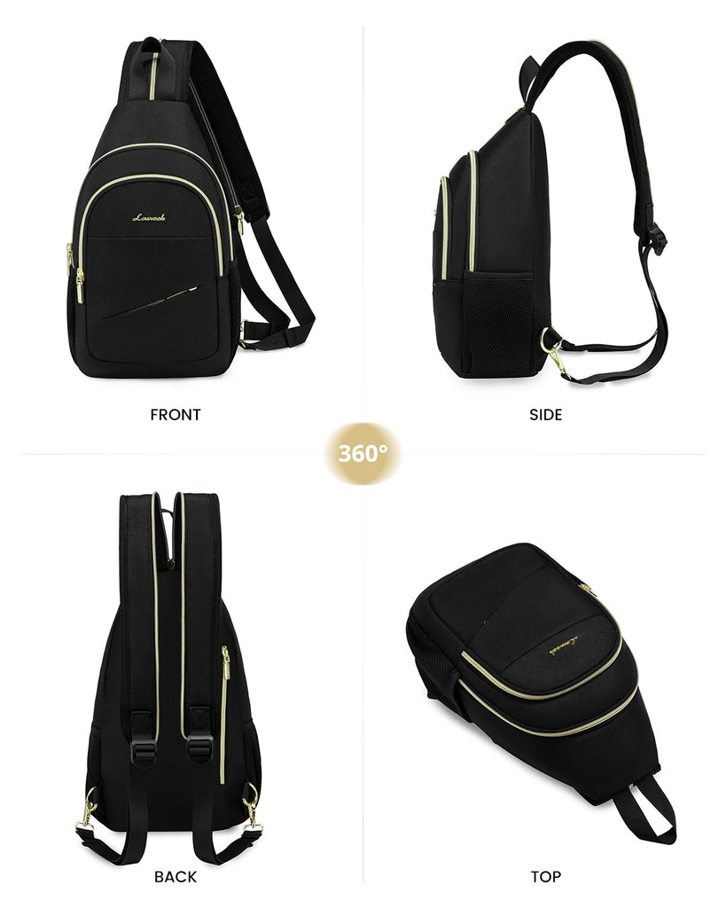 LOVEVOOK Sling Bag for Women, Sling Backpack Crossbody Bags Convertible, Small Diaper Bag Hiking Daypacks Water-resistant, Travel Shoulder Bag Chest Bag, Black