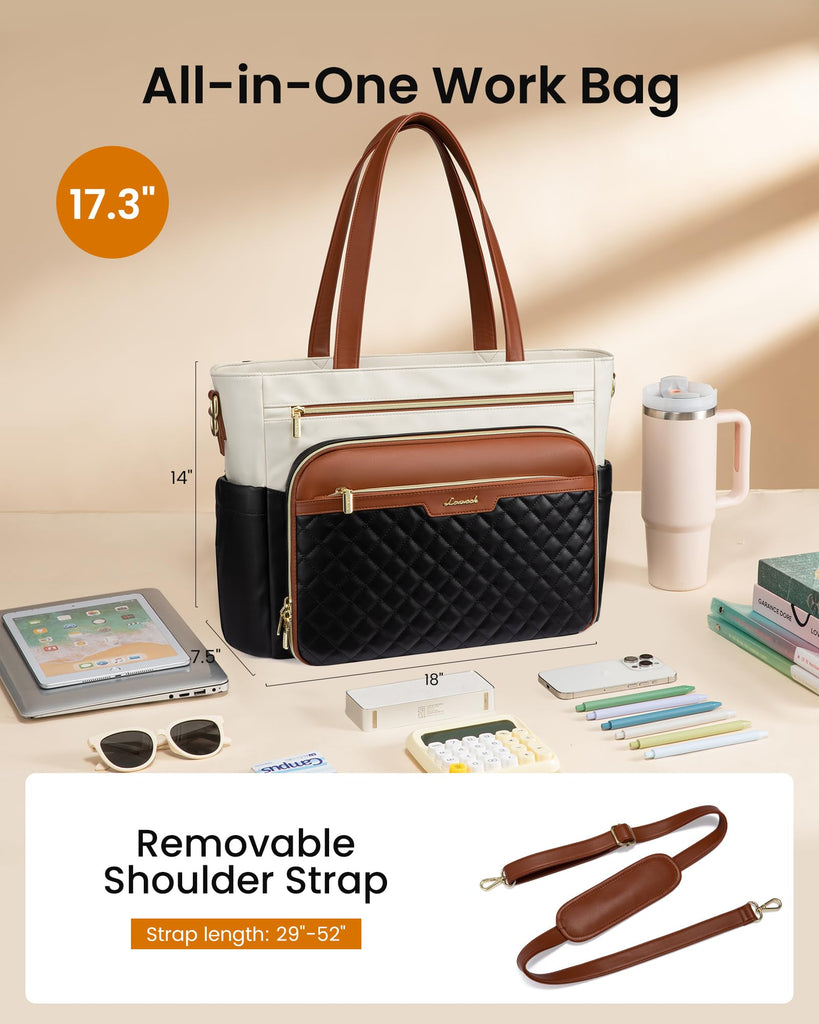 - Your Versatile Companion for Every Scenario:More than a laptop bag, it’s your all-in-one solution. Seamlessly transition from the office to a weekend trip, a campus, or a casual outing. Its elegant yet practical design makes it a perfect work bag, teacher tote, nurse bag, diaper bag, or daily carryall. It’s built to support your dynamic lifestyle with confidence and reliable style.