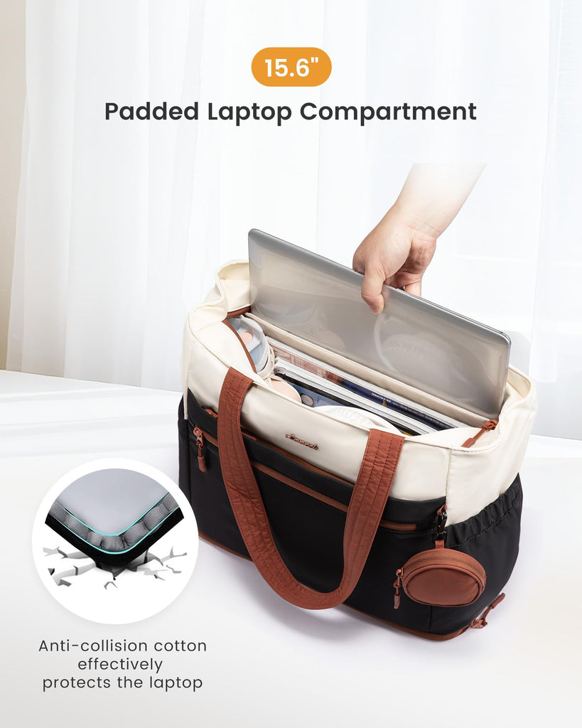 LOVEVOOK Tote Bag for Women, Expandable Laptop Work Bag 15.6 Inch, 33L Large Travel Handbag with 40oz Tumbler Holder, TSA, Chic Designer Style Contrast