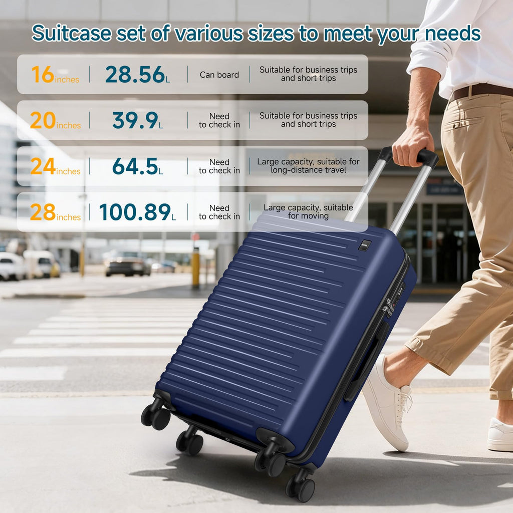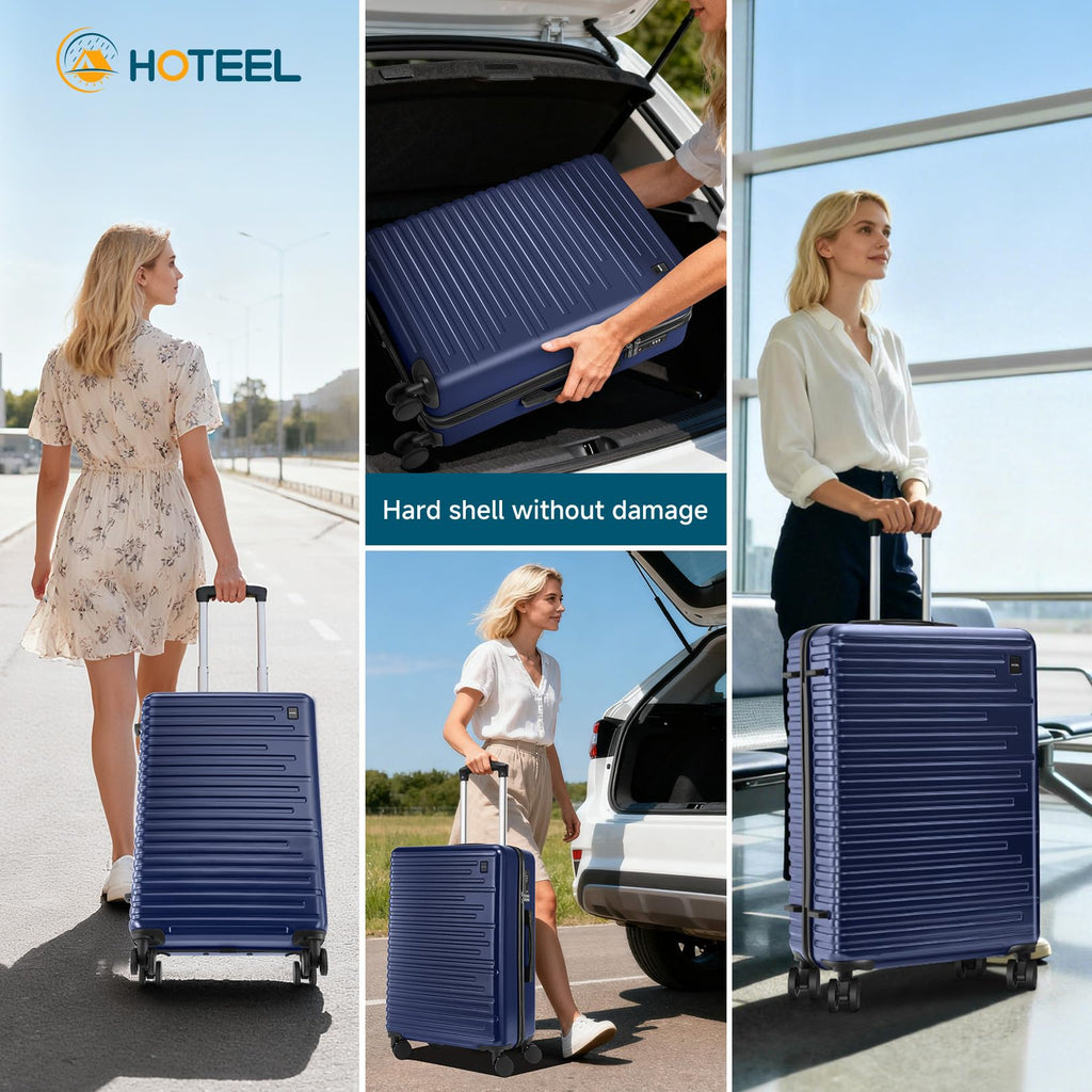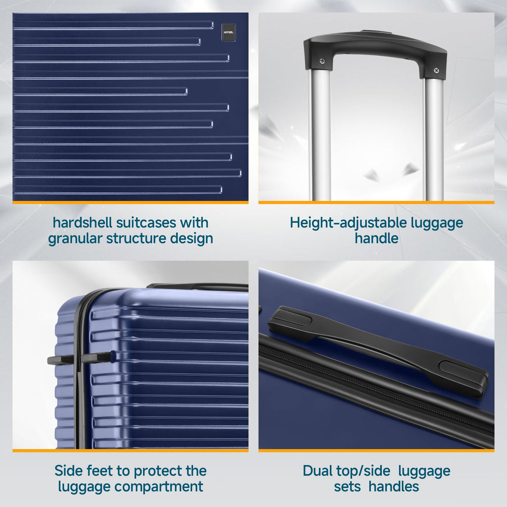 Hoteel Luggage Sets 5 Piece, 4-Year Warranty, Carry-On Luggage with Dual-Spinner Wheels, PC+ABS Hardside Suitcase Set with TSA Lock, Durable Large Suitcase, Dark Blue(20/24/28/DB/TB)