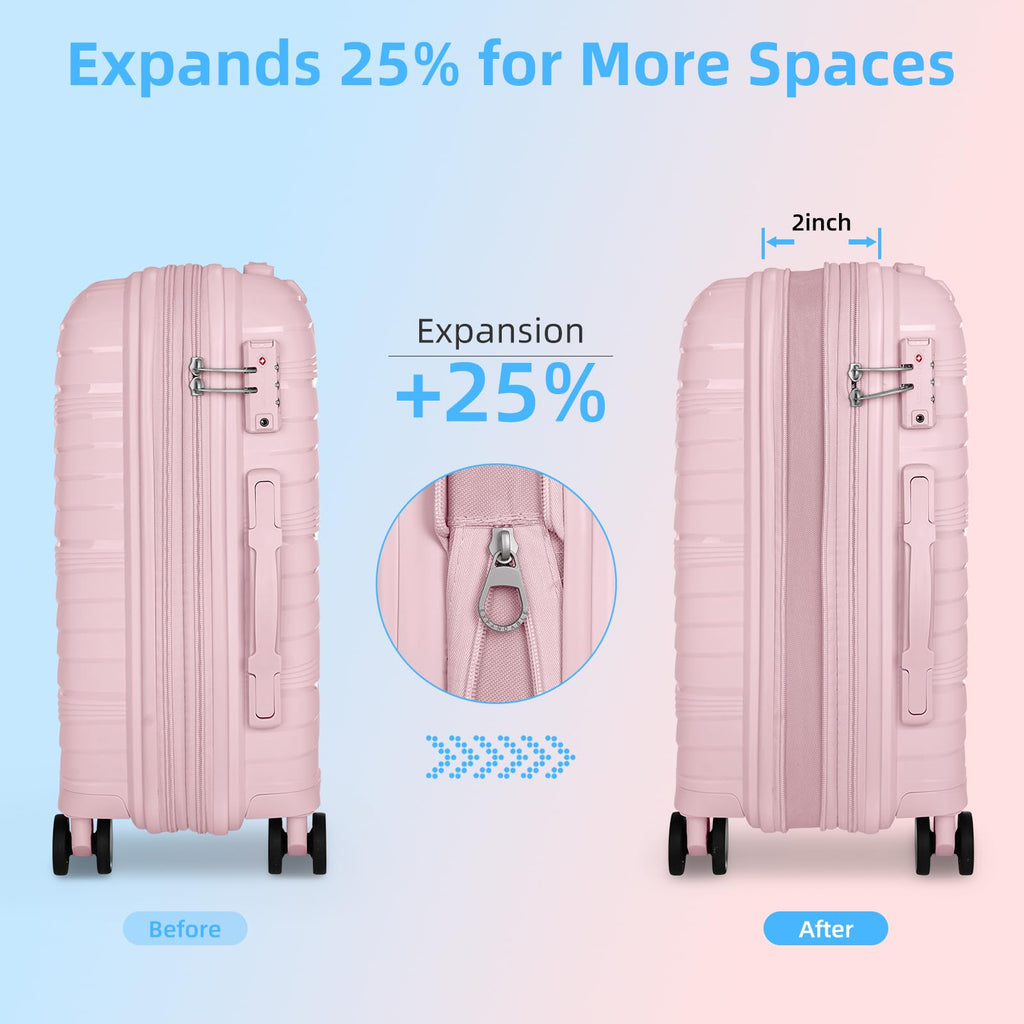 - Sturdy PP Material: The 20-inch luggage set is crafted from 100% polypropylene (PP) hardshell, providing exceptional durability against abrasion and scratches for long-lasting reliability
