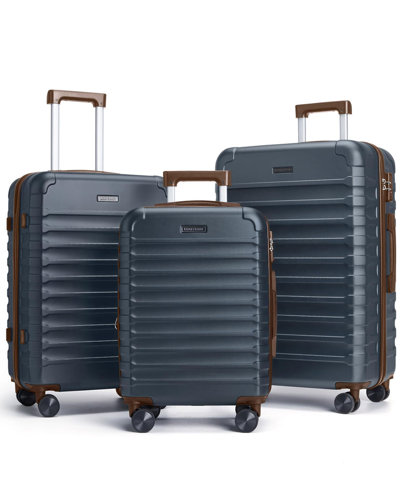 LIGHT FLIGHT Luggage Sets, 3 Piece Durable Suitcase Set with Spinner Wheels, 3 Pcs Hard Shell Lightweight Luggage with TSA Lock, Large Checked Travel Suitcases, 20/24/28 Inch,Blue/Brown