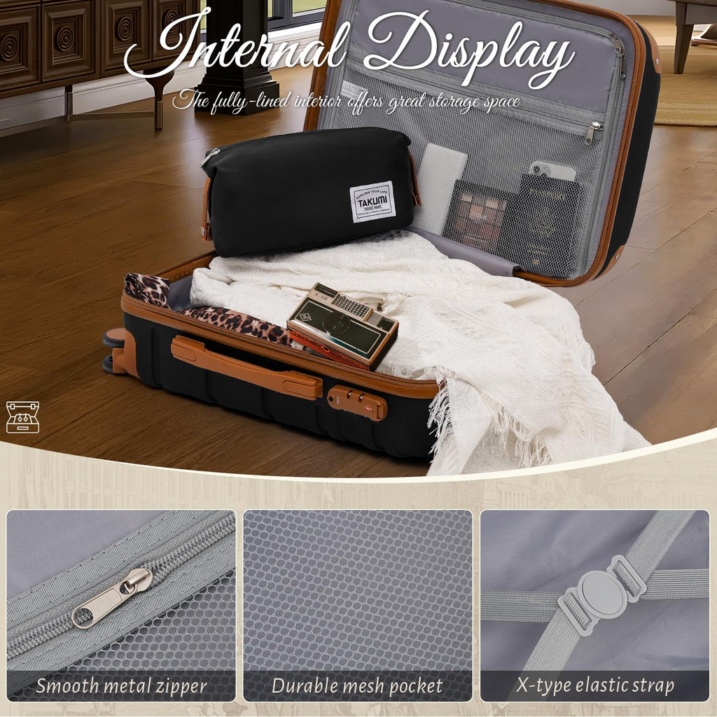 Brand: TAKUMIColor: BLACK BROWNFeatures: 【Zip Effortless,Built to Last】Our ultra-smooth YKK zippers glide with buttery ease even when overpacked, letting you zip up quickly during hectic airport dashes—the ideal luggage set for women who value both style and durability. Tested for 8,000+ cycles (15+ years of weekly trips), they keep performing...