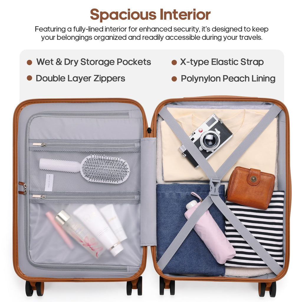 - Maximized Storage & Organization : Maximized storage in this 20-inch carry on luggage includes 2 compartments, compression straps for clothing, and a separate pocket for smaller essentials. The matching backpack adds functionality with its own spacious compartments, designed to keep your travel essentials. This set is perfect for travelers who need both organized storage and on-the-go convenience.