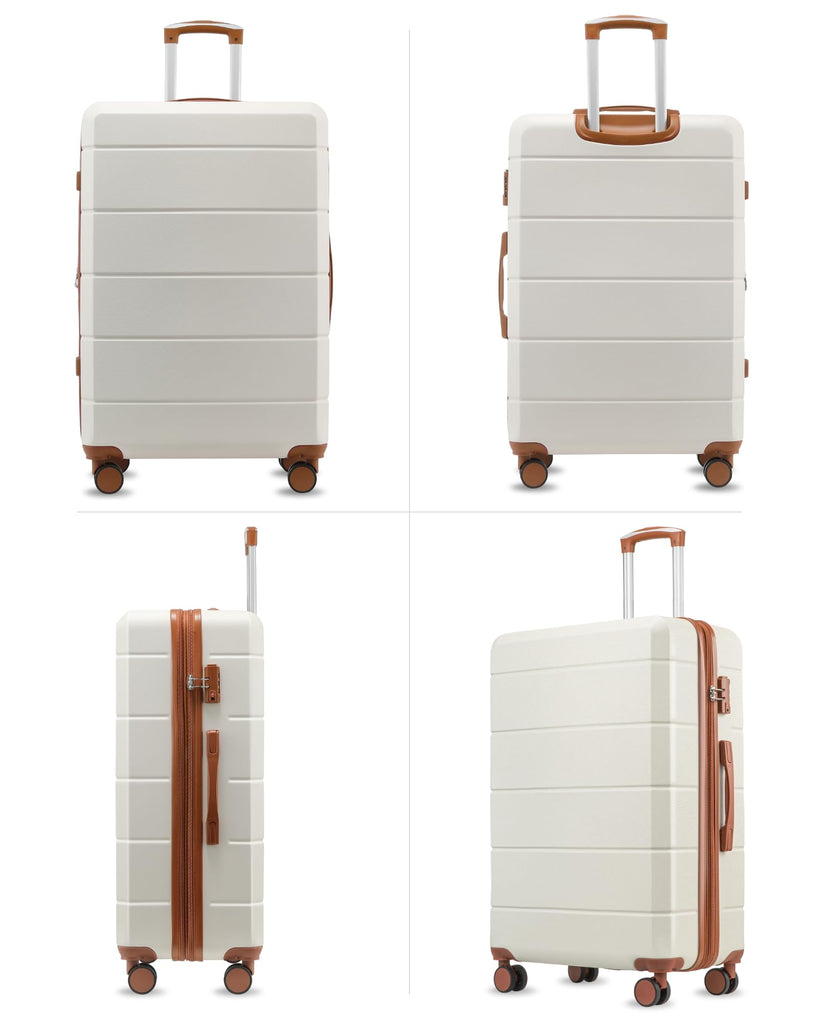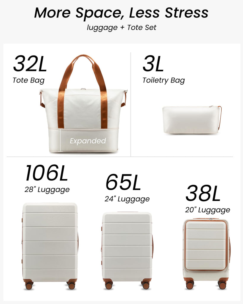 Brand: YOETEYColor: White BrownFeatures: ULTIMATE 5-PIECE TRAVEL SET: Includes a 28" checked bag, 24" medium suitcase, 20" airline-approved carry-on, versatile tote bag, and toiletry bag; a comprehensive solution designed to meet all your needs for family vacations, business trips, or international travel EXPANDABLE DESIGN FOR EXTRA SPACE: The 24" and...