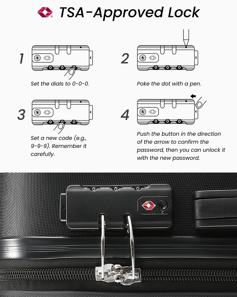 - SECURE TSA LOCK & SILENT SPINNERS: Features an integrated TSA-approved combination lock to safeguard your valuables while allowing hassle-free security inspections; equipped with 8 silent 360-degree spinner wheels and an ergonomic telescopic handle for effortless mobility through busy terminals