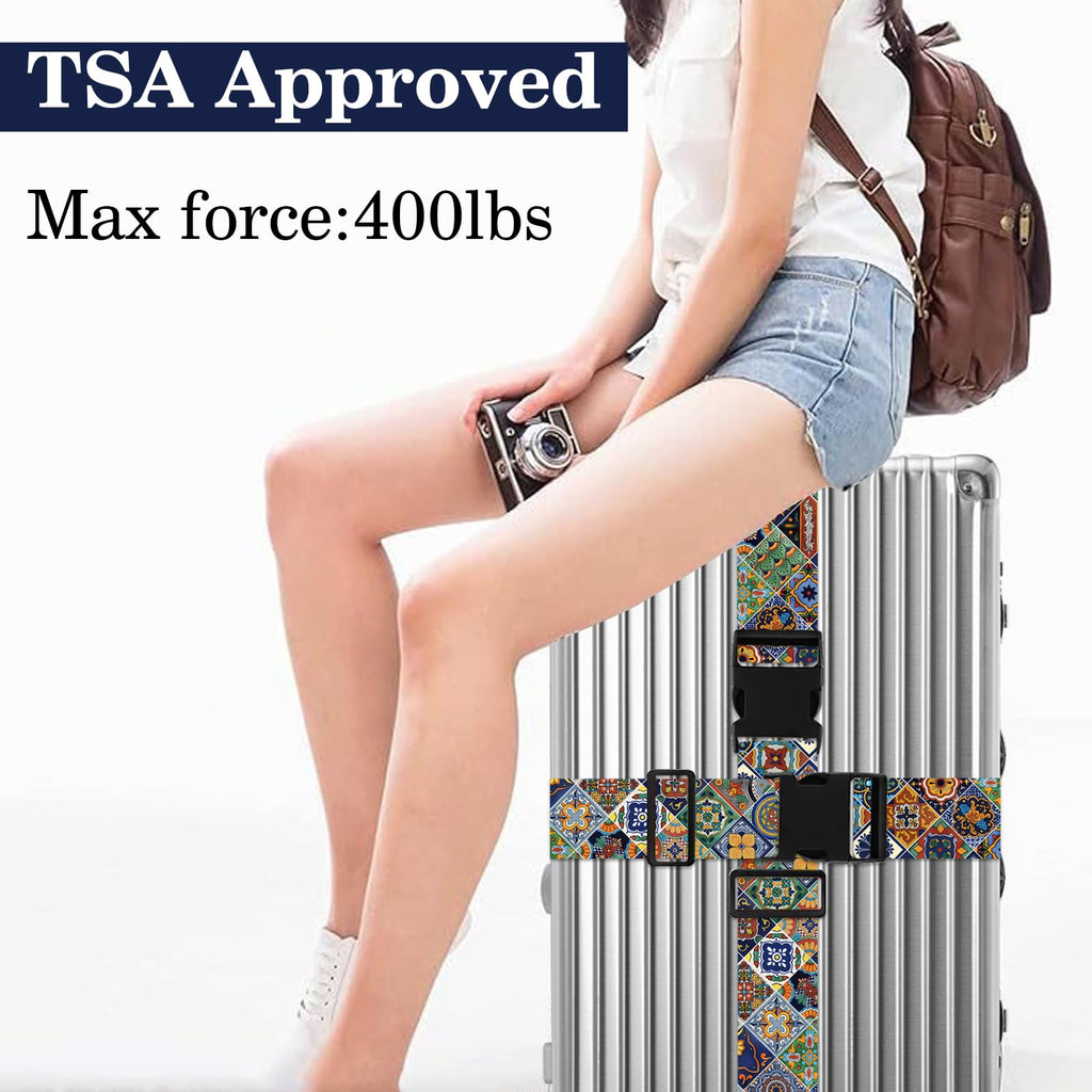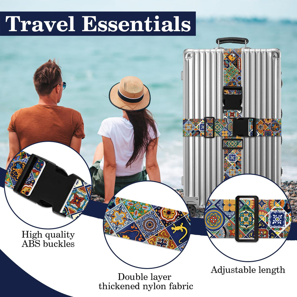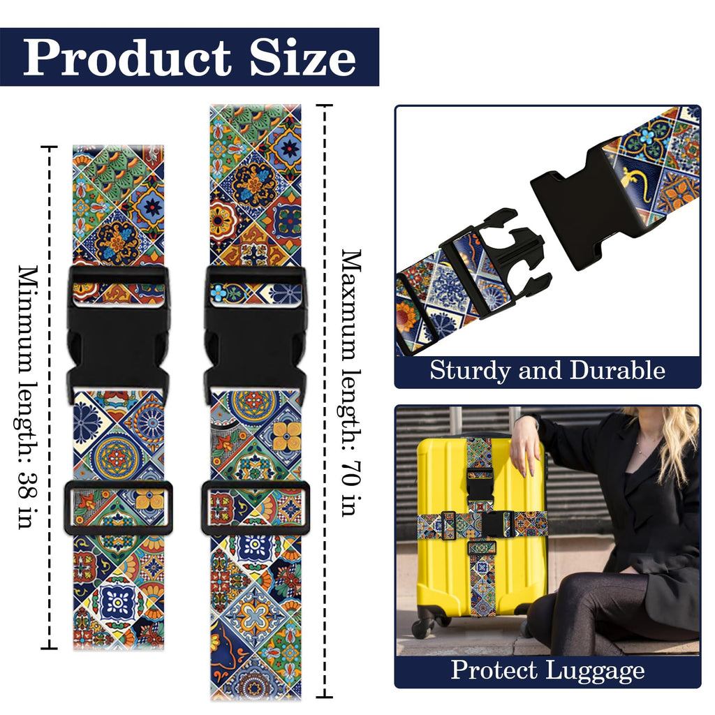 Boho Luggage Straps for Suitcases TSA Approved, Luggage Identifiers for Suitcase, Adjustable Suitcase Strap for Baggage Security with Cute Patten, Travel Necessary Accessories (2Pack)
