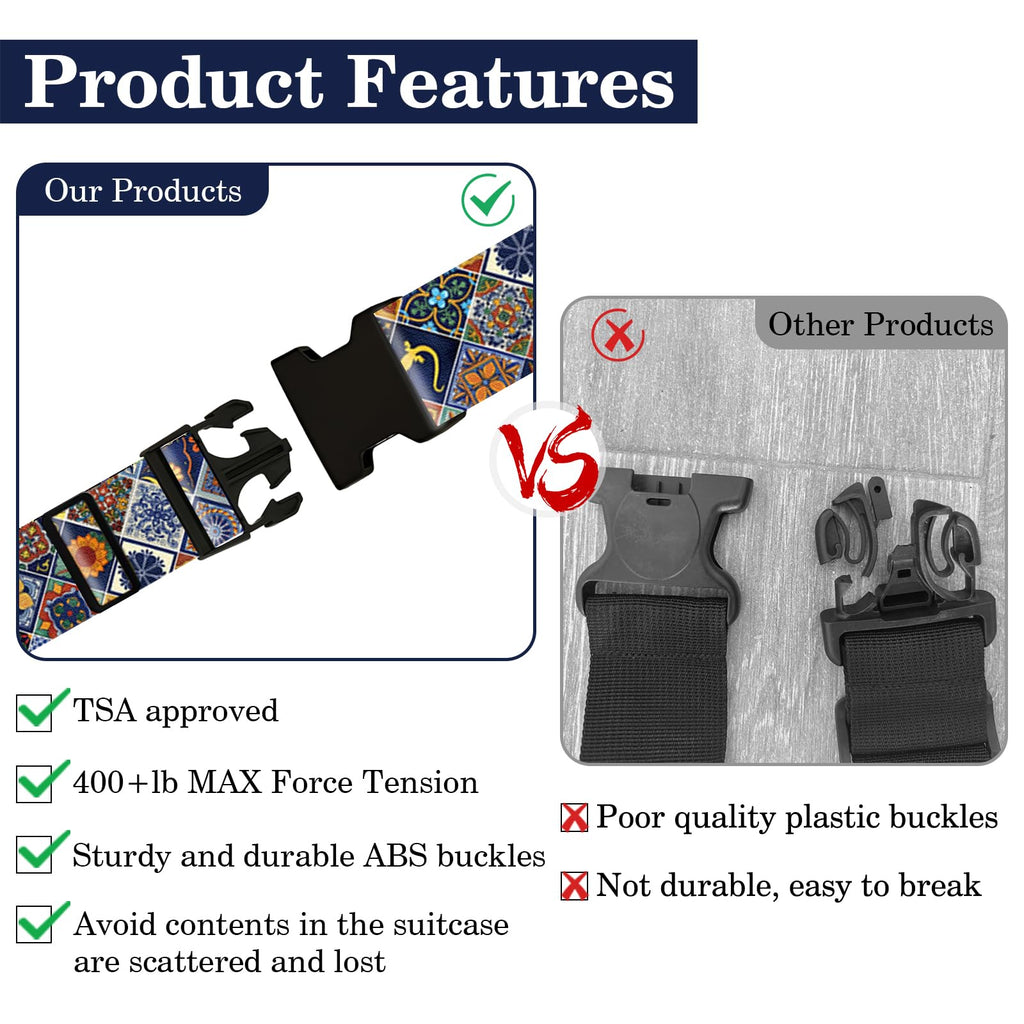 - Luggage Identifiers and Unique Print Design: Unique suitcase strap pattern design, easily identify your luggage, make it easy to spot your belongings at airports, bus stations.