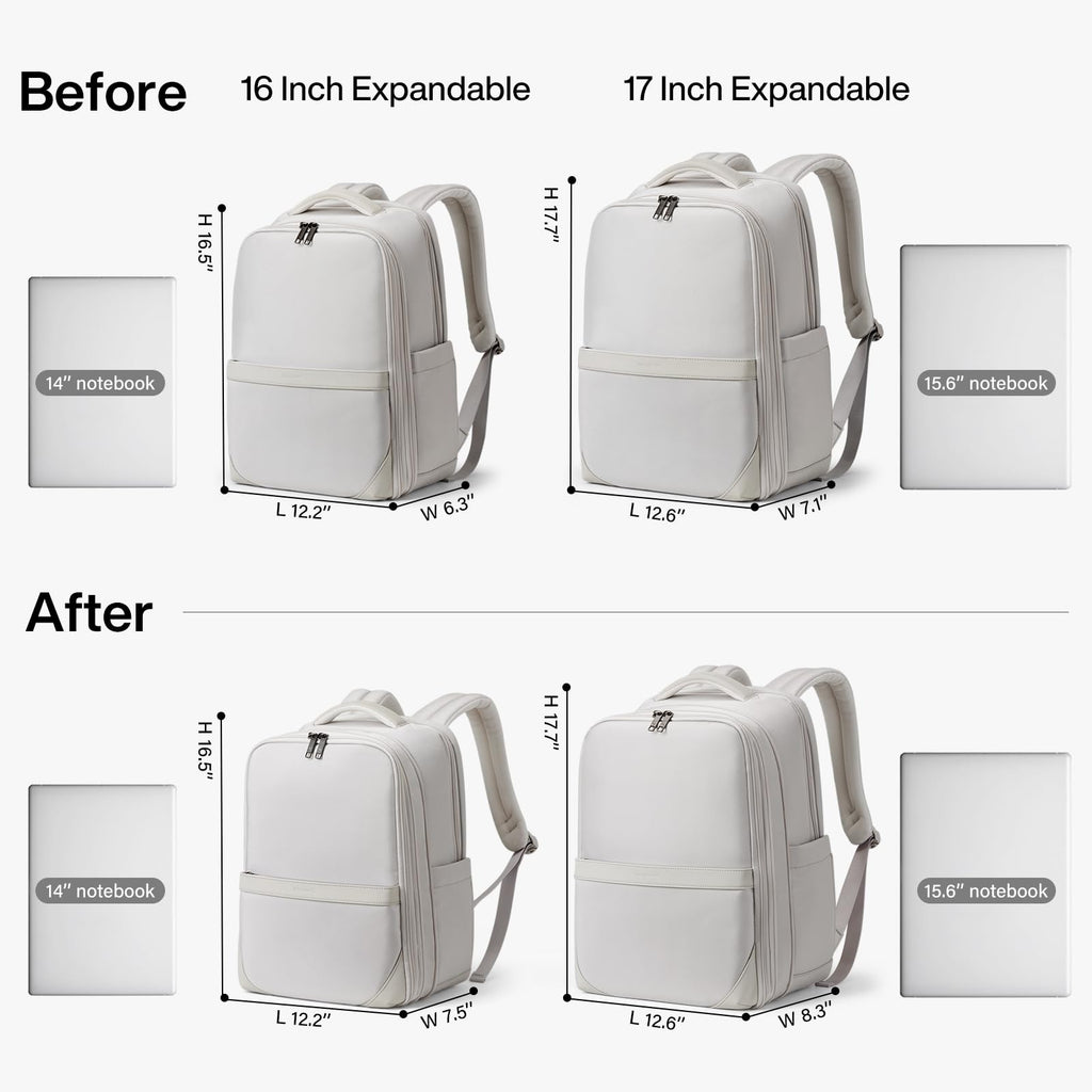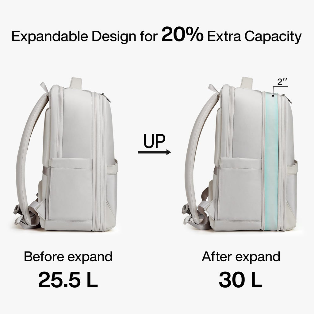 Hanke Expandable Travel Backpack 17 Inch, Full-Open Laptop Backpack Fits 15.6 Inch, Carry On Personal Item Bag with Luggage Strap, Business Work Backpack for Women Men, Light Grey