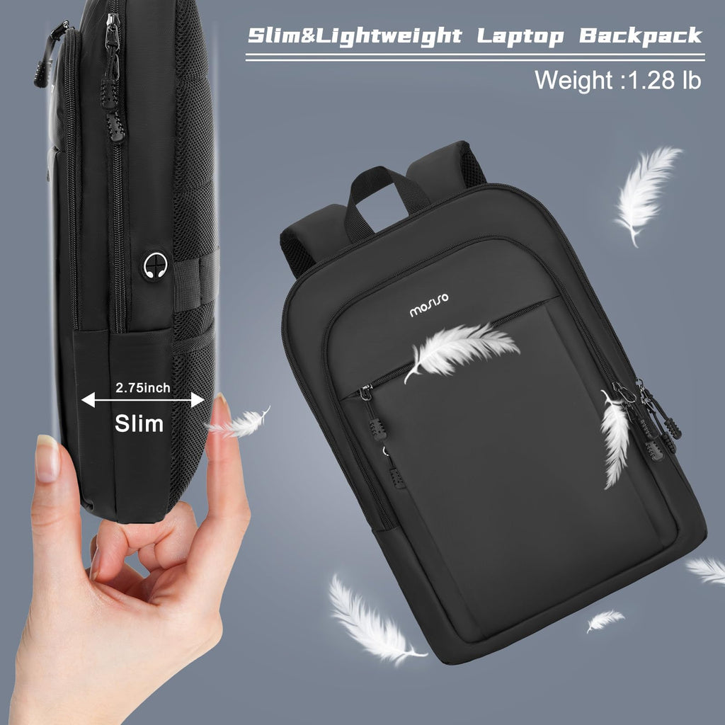 MOSISO Laptop Backpack for Men, Slim Lightweight Compact Computer Backpack for College Work Business Office Travel, 15.6 inch Waterproof Commute Laptop Bag Casual Daypack with Luggage Strap, Black
