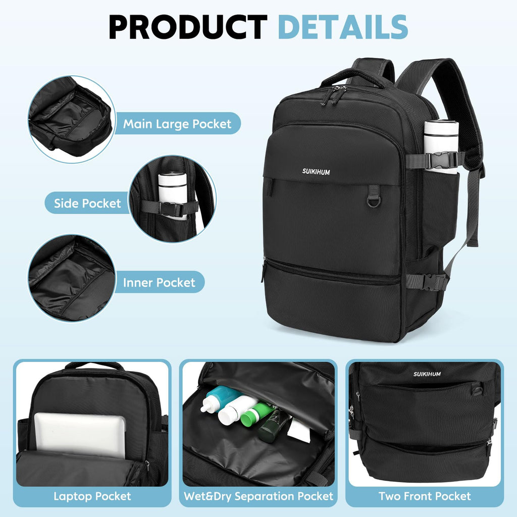 Brand: SUIKIHUMColor: BlackFeatures: -Designed for Travel & Everyday Use- This versatile travel backpack is built for weekend trips, daily commuting, and casual use. Airline carry-on friendly size makes it easy to move from the airport to the office without switching bags -Smart 11-Pocket Organization- Features 11 functional pockets to keep...